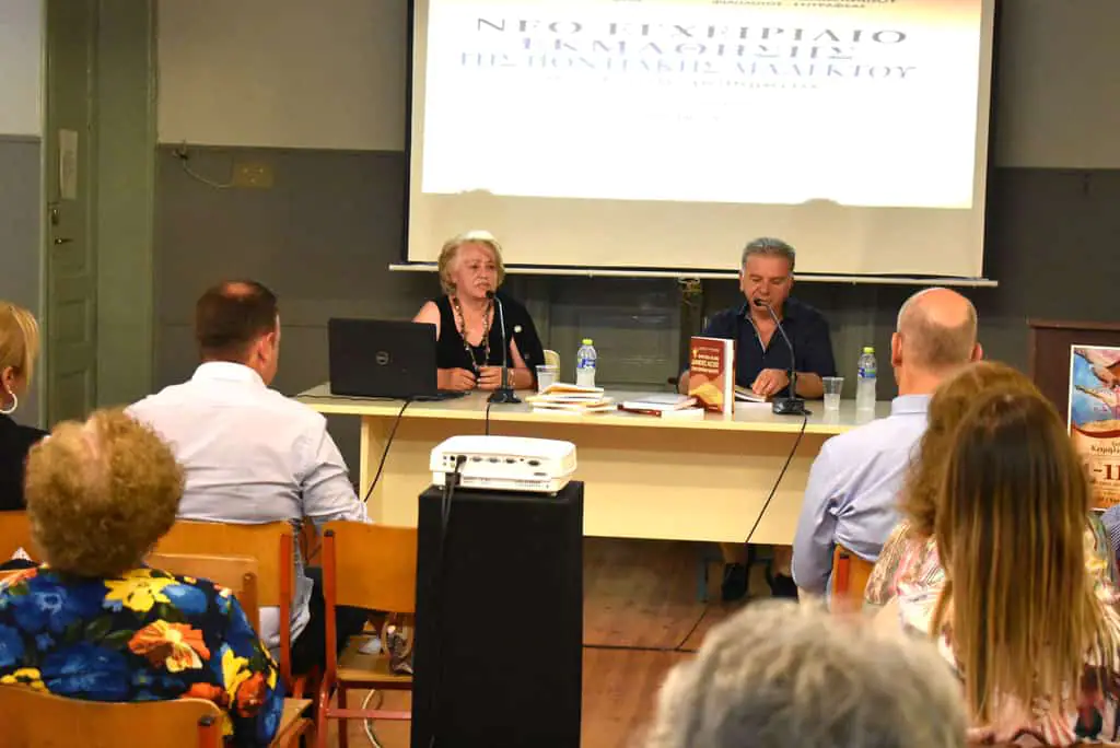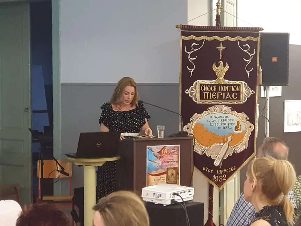 Στις 4 Ιουνίου στην έναρξη της έκθεσης ο σύλλογος είχε την χαρά να φιλοξενήσει ένα αξιόλογο άτομο με μεγάλη προσφορά στον ποντιακό χώρο, την Φιλόλογο-Συγγραφέα κ. Γιώτα Ιωακειμίδου. Τα μέλη και οι φίλοι του συλλόγου παρακολουθήσαν την μεστή ομιλία της συγγραφέως καθώς και γνώρισαν από κοντά την σημαντική της προσφορά στην διατήρηση, διαφύλαξη και εκμάθηση της ποντιακής διαλέκτου μέσα από το μεγάλο συγγραφικό της έργο. Την παρουσίαση του πλούσιου έργου της έκανε η γραμματέας του συλλόγου κ. Περιστέρα Πεΐδου ενώ ο Πρόεδρος κ. Κώστας Παπουτσίδης αναφέρθηκε στην διαχρονική έμπρακτη προσπάθεια που κάνει ο σύλλογος για την προβολή και εκμάθηση της ποντιακής διαλέκτου και εξήρε το σημαντικό έργο της κ. Ιωακειμίδου.