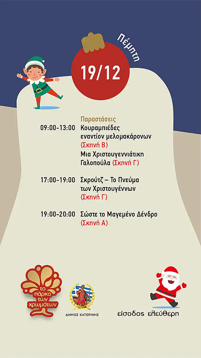 Ολύμπιο Βήμα » Επικαιρότητα » Εκδηλώσεις » Κατερίνη – Πάρκο των Χρωμάτων: Πρόγραμμα εκδηλώσεων για σήμερα 19/12