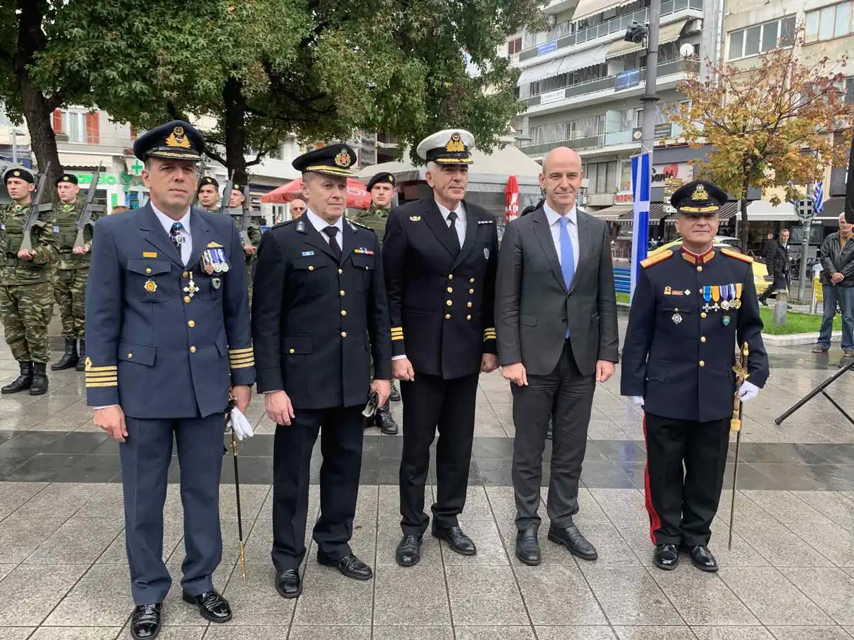 Στεφάνι κατέθεσαν ο Εκπρόσωπος της Κυβέρνησης Σάββας Χιονίδης, ο Εκπρόσωπος της Βουλής των Ελλήνων Σπύρος Κουλκουδίνας, ο Ανώτερος Διοικητής Φρουράς Π.Ε. Πιερίας και Διοικητής της XXIV Τεθωρακισμένης Ταξιαρχίας, η Αντιπεριφερειάρχης Πιερίας Σοφία Μαυρίδου, η εκπρόσωπος του Δημάρχου Κατερίνης Ελίνα Διαμαντοπούλου, ο Αστυνομικός Διευθυντής Πιερίας, ο Διοικητής Πυροσβεστικών Υπηρεσιών Πιερίας και ο Λιμενάρχης Σκάλας Κατερίνης.