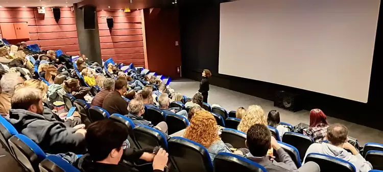 Η πρόεδρος της Λέσχης καλωσόρισε και φέτος τους θεατές παρουσιάζοντας το νέο πρόγραμμα της Λέσχης.