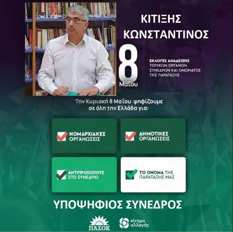 Στη γιορτή της Δημοκρατίας που είναι οι εκλογές για τις νέες Νομαρχιακές Επιτροπές, τις νέες Συντονιστικές Επιτροπές των τοπικών οργανώσεων και τους συνέδρους του 3ου Συνεδρίου του Κινήματός μας στις 8 Μαΐου 2022, θέτω υποψηφιότητα ως Σύνεδρος.