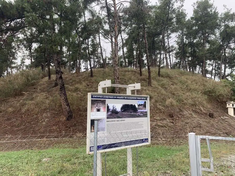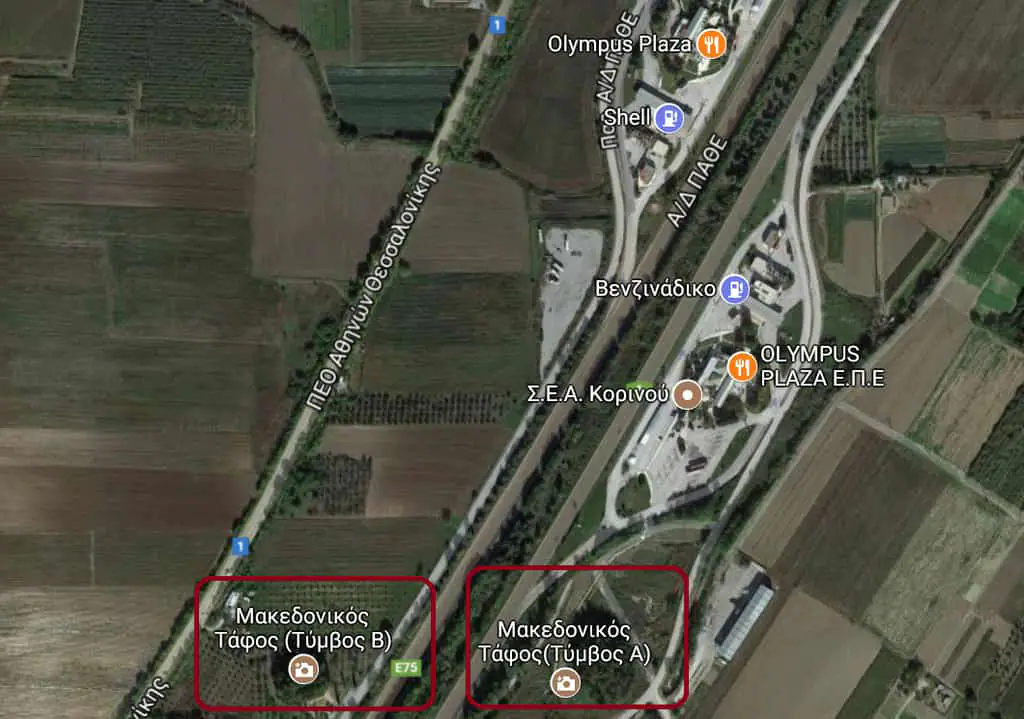Λίγα μέτρα πιο κάτω, δίπλα στον ΣΕΑ (Σταθμό Εξυπηρέτησης Αυτοκινητιστών) υπάρχει κλειστό και σφραγισμένο κάτι ακόμα: Ένα μνημείο πιθανότατα Παγκόσμιας Πολιτιστικής Κληρονομιάς: Ο αρχαίος μακεδονικός τύμβος όπως λέγεται της Ολυμπιάδας, της διάσημης βασίλισσας της Μακεδονίας, δηλαδή της μητέρας του Μεγάλου Αλεξάνδρου, του μεγαλύτερου Έλληνα στρατηλάτη όλων των εποχών. Χιλιάδες οδηγοί περνούν από εκεί μέρα-νύχτα, αλλά κανείς δεν το ξέρει.
