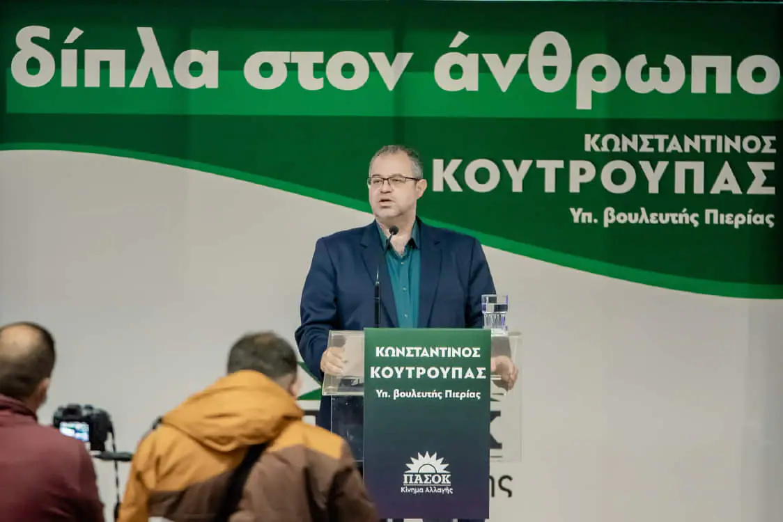 Ο κ. Κουτρούπας αναφέρθηκε στην απόφαση του να ζήσει και να εργαστεί στην Πιερία αλλά και στην αταλάντευτη πολιτική του απόφαση σημειώνοντας: «Ποτέ δεν λοξοδρόμησα στις σειρήνες της δεξιάς και της αριστεράς. Αταλάντευτα  παρέμεινα στον χώρο αυτό. Για πάντα εδώ και για πάντα ΠΑΣΟΚ».