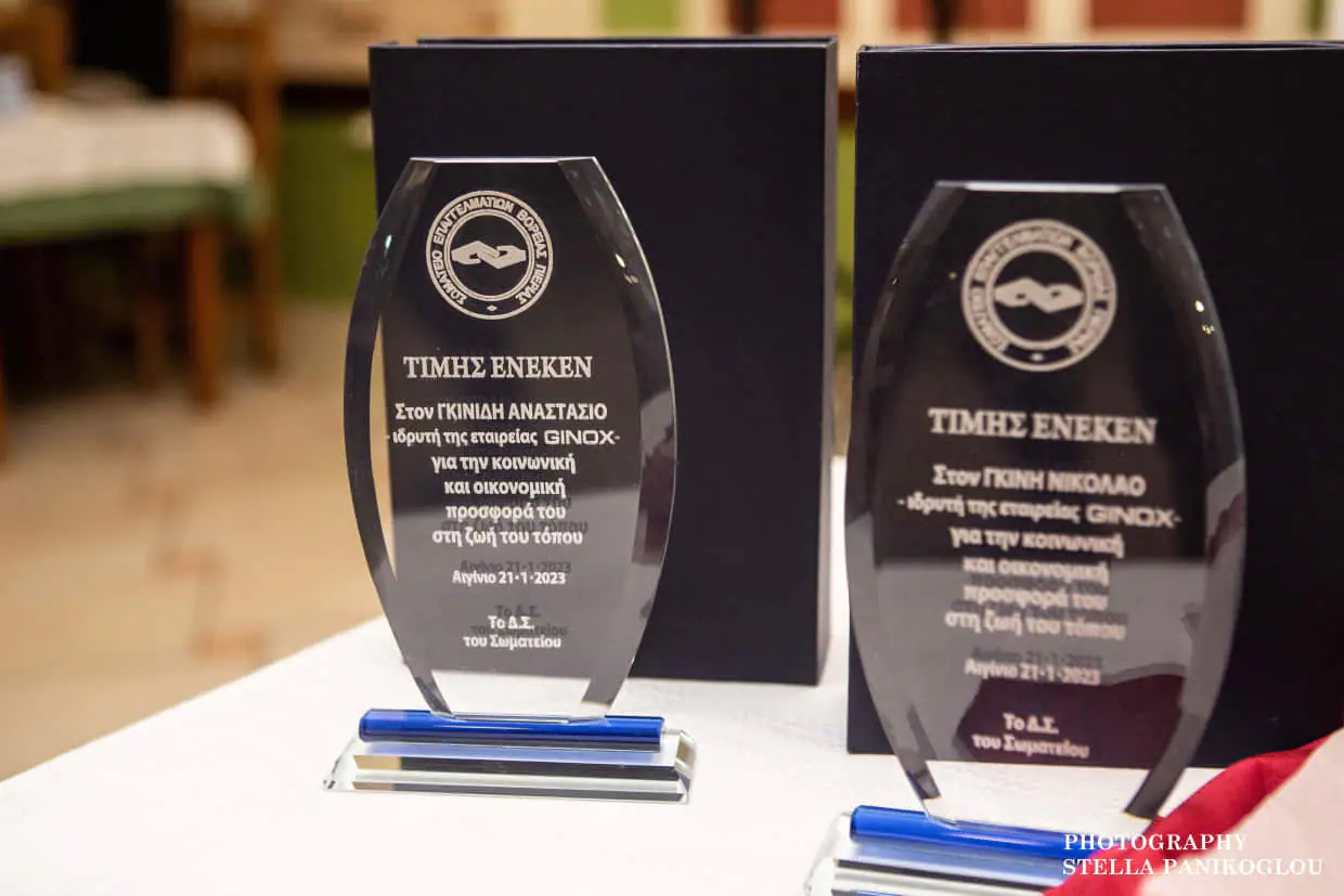 Με απόφαση του Δ.Σ. του Σωματείου τιμήθηκαν για την προσφορά τους στην κοινωνική και οικονομική ζωή του τόπου οι ιδρυτές της εταιρείας «GINOX Α.Ε.Β.Ε.» Νίκος Γκίνης και Αναστάσιος Γκινίδης καθώς και ο πρώην Πρόεδρος του Σωματείου, Πέτρος Τερζής, για την πολυετή και πολύτιμη προσφορά του στην ανασύσταση και ανάπτυξη του Σωματείου.