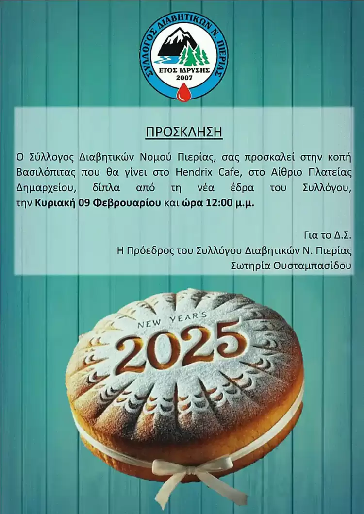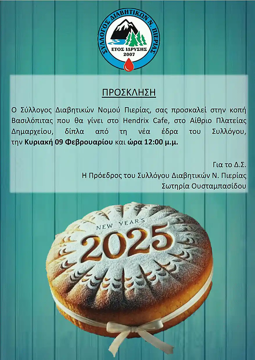 Κοπή της Πρωτοχρονιάτικης βασιλόπιτας του Συλλόγου Διαβητικων του Ν.Πιεριας