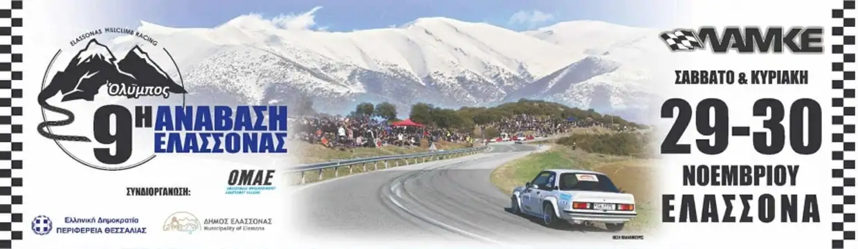 Προσωρινές κυκλοφοριακές ρυθμίσεις τίθενται σε ισχύ στην Εθνική Οδό Κατερίνης – Ελασσόνας το Σάββατο 29 Νοεμβρίου 2025 και την Κυριακή 30 Νοεμβρίου 2025, λόγω της τέλεσης του αγώνα αυτοκινήτου με την επωνυμία «9η Ανάβαση Ελασσόνας».