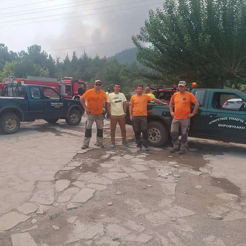 Καταθέτω τον σεβασμό μου στους πυροσβέστες αλλά και στους πιλότους των ελικοπτέρων και αεροσκαφών, που κυριολεκτικά μάχονται με τον πύρινο εχθρό, τους υλοτόμους που κόβουν συνεχώς πεύκα για να δημιουργήσουν αντιπυρικές ζώνες ασφαλείας ,τον στρατό με τις ερπυστριοφόρες μπουλντόζες που ανοίγουν δρόμους μέσα στο δάσος για τη διέλευση των πυροσβεστικών οχημάτων, αλλά δεν μπορώ να μην εκφράσω την ευγνωμοσύνη μου για τους συναδέλφους κυνηγούς των τοπικών και όχι μόνο συλλόγων.
