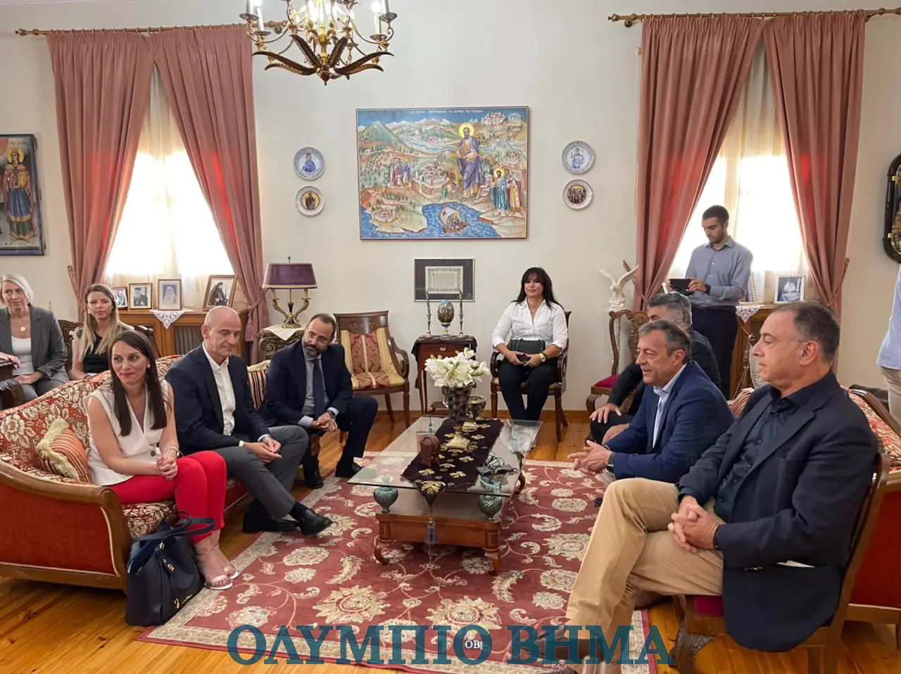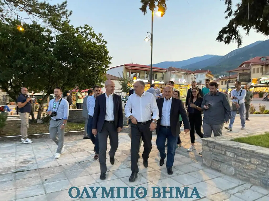 Ο Υπουργός προστασίας του Πολίτη συναντήθηκε με τον Δήμαρχο Δήμου Δίου – Ολύμπου κ. Βαγγέλη Γερολιόλιο, ενώ ο Υφυπουργός Υποδομών και Μεταφορών συναντήθηκε με τον Δήμαρχο Δήμου Πύδνας – Κολινδρού κ. Αναστάσιο Μανώλα. Όλα τα μέλη του Κλιμακίου συναντήθηκαν με τον Δήμαρχο Δήμου Κατερίνης Κωνσταντίνου Κουκοδήμο καθώς και με τον Μητροπολίτη Κίτρους, Κατερίνης και Πλαταμώνα κ. κ. Γεώργιο.