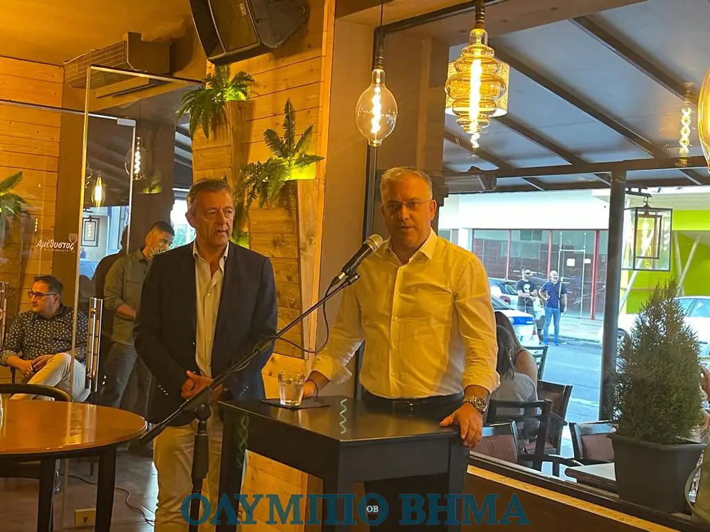 «Με πολύ μεγάλη χαρά βρίσκομαι απόψε, έστω και για λίγες ώρες στην Κατερίνη, στην πρωτεύουσα της πανέμορφης Πιερίας, ενός τόπου που αποτελεί ιστορικό, πολιτιστικό και φυσικό απόθεμα για ολόκληρη την Ελλάδα. Ενός τόπου με πολύ μεγάλη ιστορία, και πιστεύω καλό παρόν και πολύ δυναμικές προοπτικές. Διανύουμε μια περίοδο η οποία είναι δύσκολη όχι μόνο στην Ελλάδα αλλά ολόκληρο τον κόσμο εξαιτίας των παγκοσμίων κρίσεων όπως ήταν η πανδημία του Κορωναιού που ταλαιπώρησε και δοκίμασε τις αντοχές όλων, καθώς και ο πόλεμος και οι πολύ άσχημες επιπτώσεις, ενεργειακή κρίση και ένα κύμα ακρίβειας το οποίο σαρώνει ολόκληρη την ανθρωπότητα. Παρόλα αυτά βλέπετε ότι η κυβέρνηση είναι δίπλα στους πολίτες, στηρίζει κάθε μήνα με σχεδόν δυο δισεκατομμύρια ευρώ στους λογαριασμούς ηλεκτρικού ρεύματος των πολιτών για να καλύπτεται το μεγαλύτερο μέρος της πολύ μεγάλης αύξησης του ηλεκτρικού ρεύματος και ταυτοχρόνως η Ελλάδα, παρά όλες αυτές τις δυσκολίες τρέχει με ένα από τους γρηγορότερους ρυθμούς οικονομικής ανάπτυξης σε ολόκληρη την Ευρώπη».