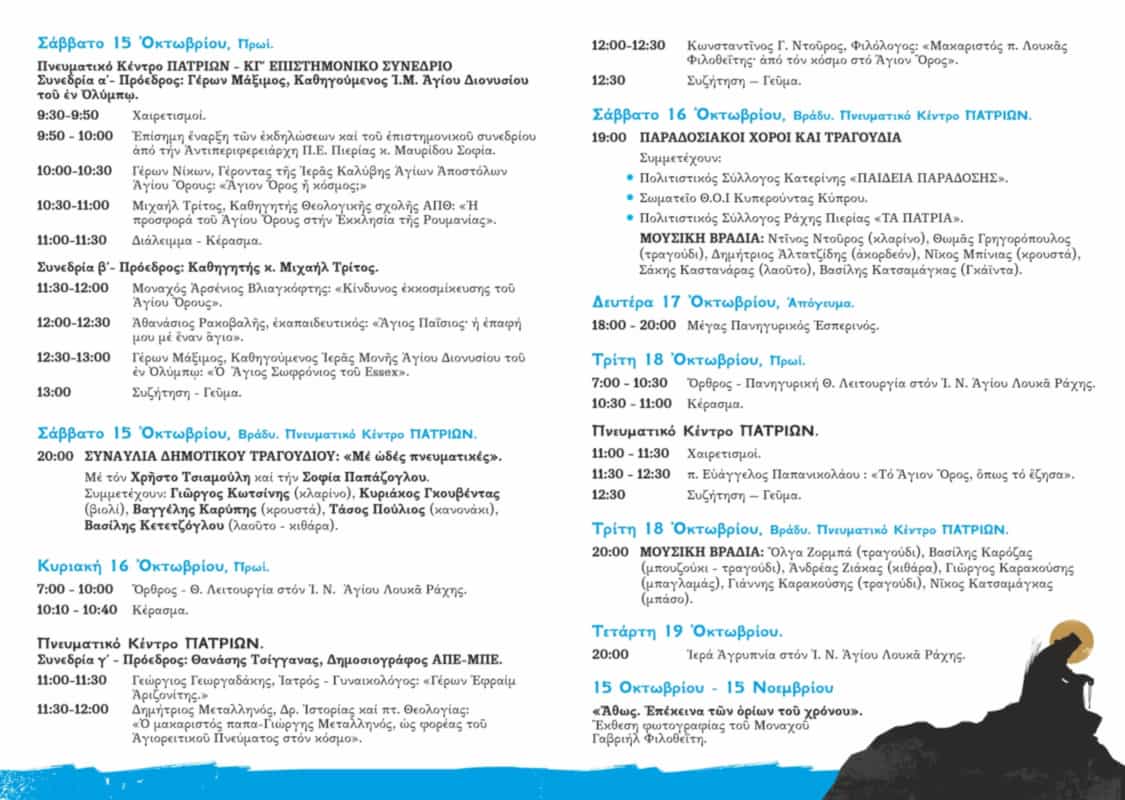 ΛΕ’ Πάτρια στη Ράχη Πιερίας – Αφιέρωμα στους Αγιορείτες Πατέρες (Πρόσκληση – Πρόγραμμα)