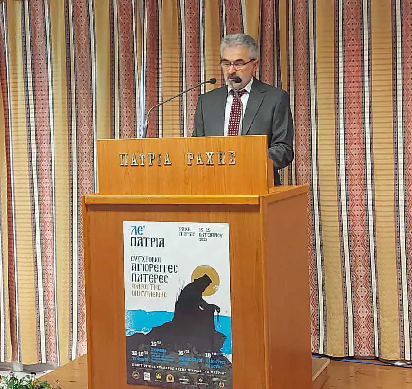 «Σύγχρονοι Αγιορείτες Πατέρες, φάροι της οικουμένης» τιτλοφορούνται τα ΛΕ’ Πάτρια, η αυλαία των οποίων άνοιξε το Σάββατο 15 Οκτωβρίου, στο Πνευματικό Κέντρο Ράχης, με το καθιερωμένο επιστημονικό συνέδριο, στο οποίο συμμετείχαν καταξιωμένοι ομιλητές. «Το Άγιον Όρος δεν είναι μόνο τόπος. Είναι τρόπος ζωής!» Η φράση αυτή, στον επίλογο της ομιλίας του Γέροντος Νίκωνος συμπυκνώνει ίσως το νόημα, όλων των σημαντικών που ειπώθηκαν στη διάρκεια του διήμερου συνεδρίου.