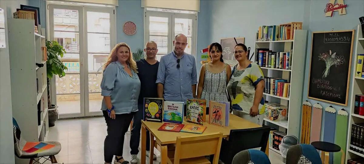 Εκπροσωπώντας την ομάδα “Μαμάδες σε Δράση – παιδιών ηλικίας 0-9 ετών», η Χριστίνα Σιδηροπούλου, η Λυδία Υφαντίδου και η Κλειώ Υφαντίδου, συναντήθηκαν μαζί τους προκειμένου να τους ενημερώσουν για τη δράση “Τι λείπει από τη Δημοτική Βιβλιοθήκη” της πόλης, μια πρωτοβουλία του https://alana-athens.gr/ , και να δωρίσουν στη δημοτική βιβλιοθήκη Κατερίνης τα καλαίσθητα και πρωτότυπα βιβλία με εικονογράφηση για παιδιά από τις εκδόσεις “ΣΠΟΡΟΣ” (https://www.sporos-books.gr/) : 1. “Η μεγάλη εικόνα: Η ιστορία της βίβλου” (παιδική βίβλος), 2. “Φίλος που συγχωρεί”, 3. “Αντίο στα αντίο”, 4. “Μια πολύ καλή ιδέα”, 5. “Ο κήπος”, 6. “Η υπόσχεση των Χριστουγέννων”.
