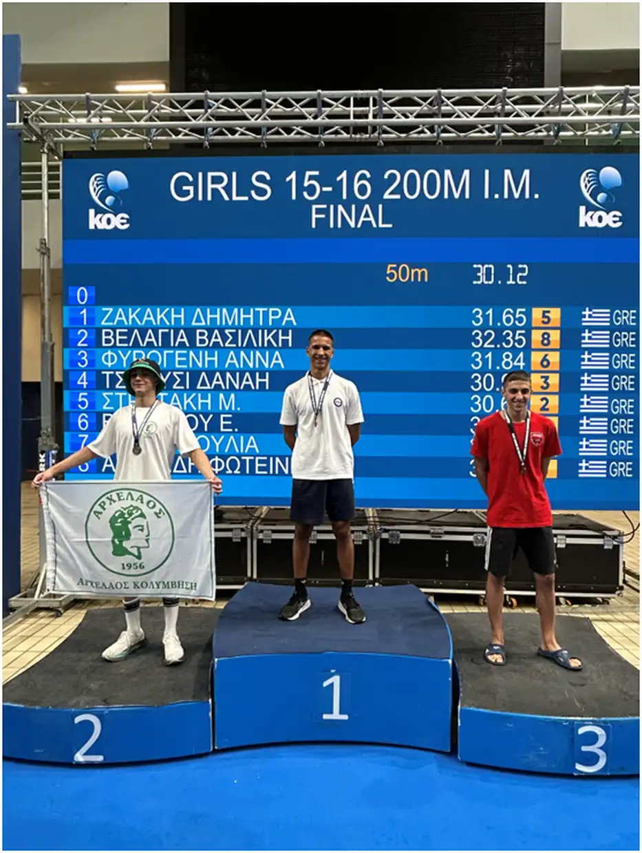 Με «95 βαθμούς» στη συγκομιδή τους, «(3) μετάλλια», δύο (2) αργυρά και ένα (1) χάλκινο, συμμετοχές σε τελικούς και στις καλύτερες 16άδες των αγωνισμάτων τους, επέστρεψαν οι κολυμβητές-τριες του Αρχέλαου Κατερίνης από το Πανελλήνιο πρωτάθλημα Κολύμβησης που ολοκληρώθηκε στις 11-14 Ιουλίου στο Ολυμπιακό αθλητικό κέντρο Αμαρουσίου.