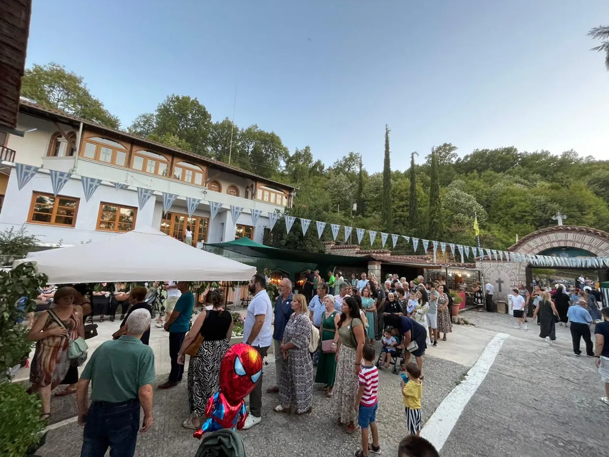 Με το τέλος της θείας λειτουργίας κλήρος και λαός απόλαυσαν τη θερμή φιλοξενία που με επιμέλεια ετοίμασαν τόσο οι μοναχές, όσο και οι πιστοί που διακονούν το ναό.