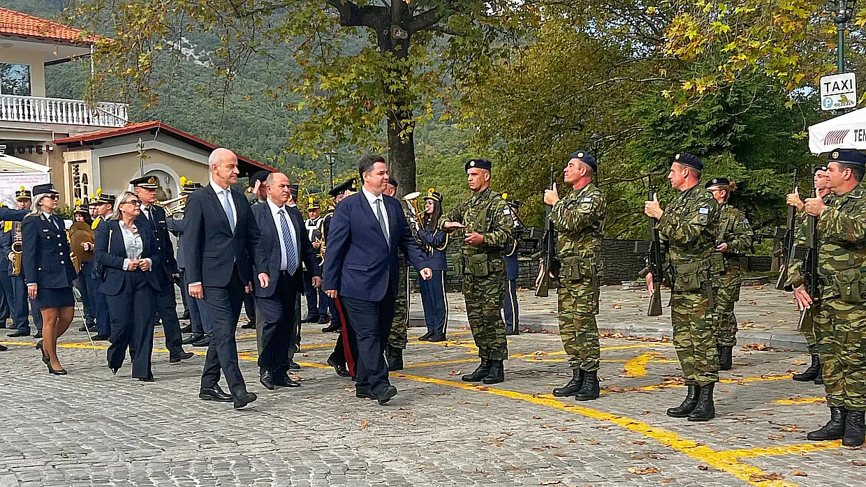 Στο πλαίσιο του εορτασμού της εθνικής επετείου ο δήμαρχος κ. Γερολιόλιος παρέθεσε δεξίωση στην αίθουσα συνεδριάσεων του Δημοτικού Συμβουλίου, στην οποία καλωσόρισε τον υφυπουργό κ. Κοντογεώργη στον Δήμο Δίου-Ολύμπου.