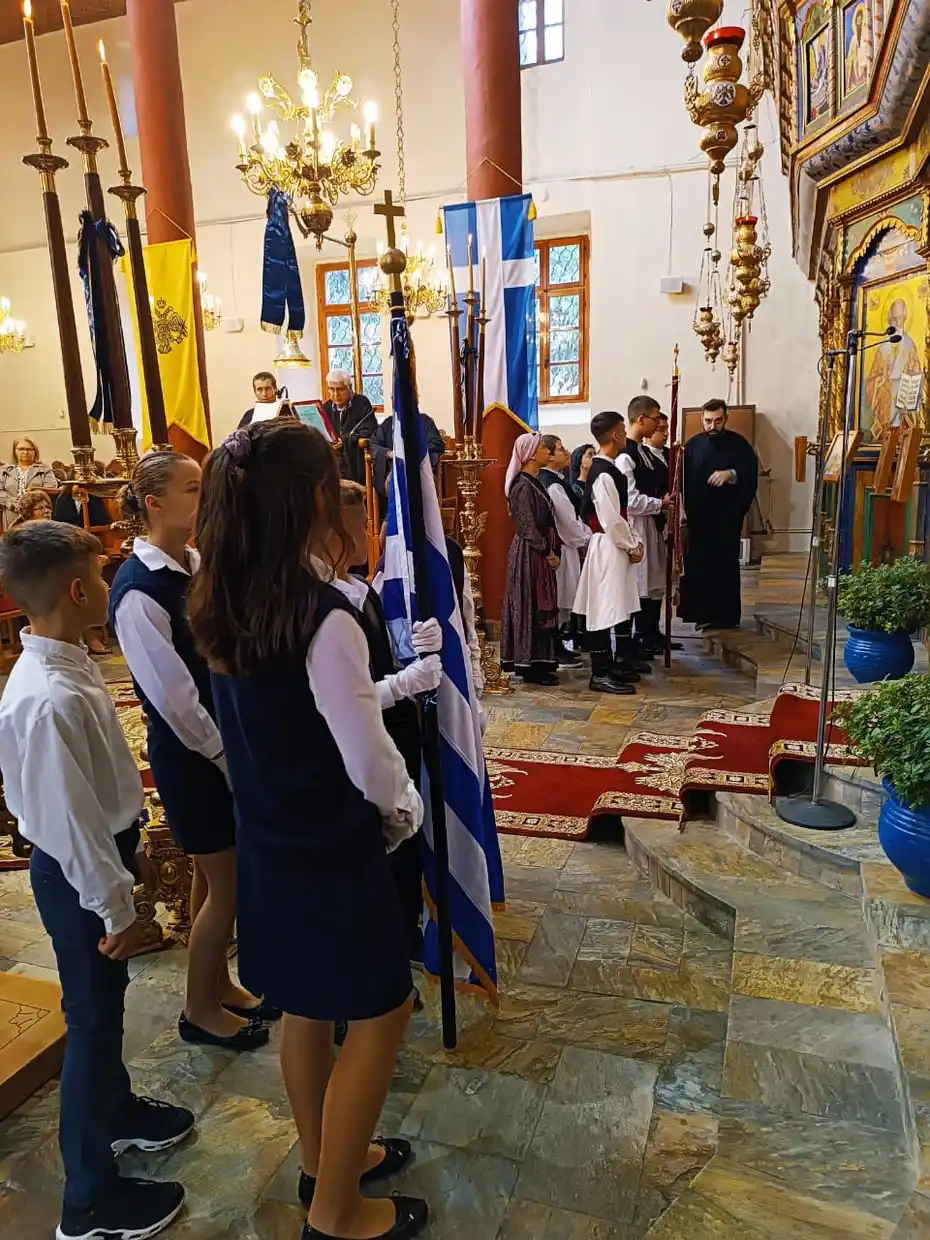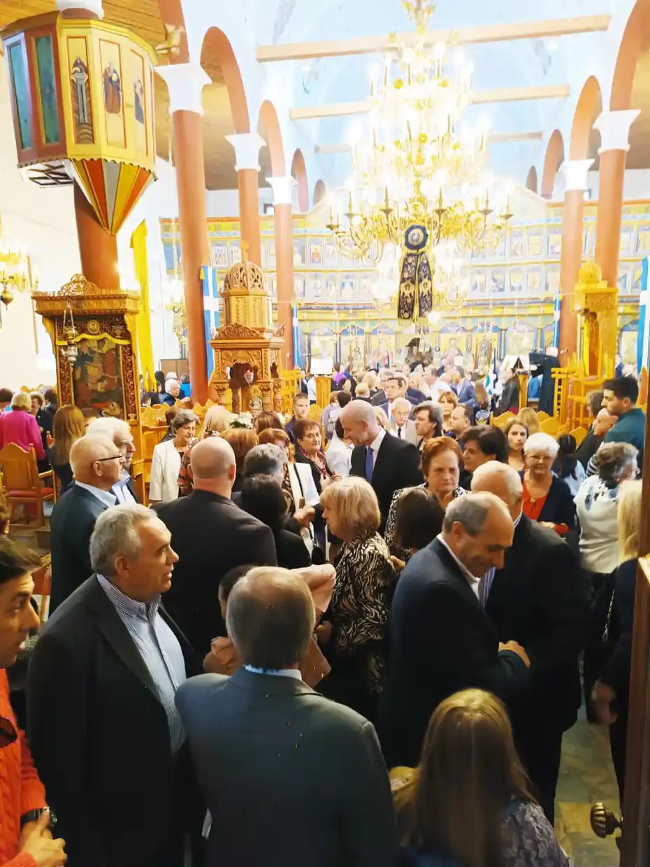 Στην δοξολογία στον Ιερό Ναό του Αγίου Δημητρίου Κολινδρού παρέστησαν η Υφ. Ανάπτυξης Άννα Παπαδημητρίου, οι Βουλευτές Ξενοφών Μπαραλιάκος και Σπύρος Κουλκουδίνας, ο Δήμαρχος Πύδνας Κολινδρού Αναστάσιος Μανόλας , ο πρόεδρος της ΤΚ Κολινδρού Θ. Σολοποτιάς, ο νεοεκλεγής Δήμαρχος Χ. Κομπατσίαρης, Αντιδήμαρχοι, Δημοτικοί Σύμβουλοι, μαθητές απο τα σχολεία του Κολινδρού, εκπρόσωποι του Πολιτιστικού Συλλόγου Νικολάου Λούση και πλήθος κόσμου.