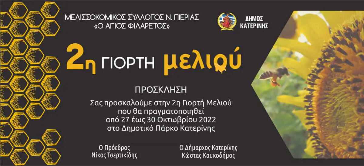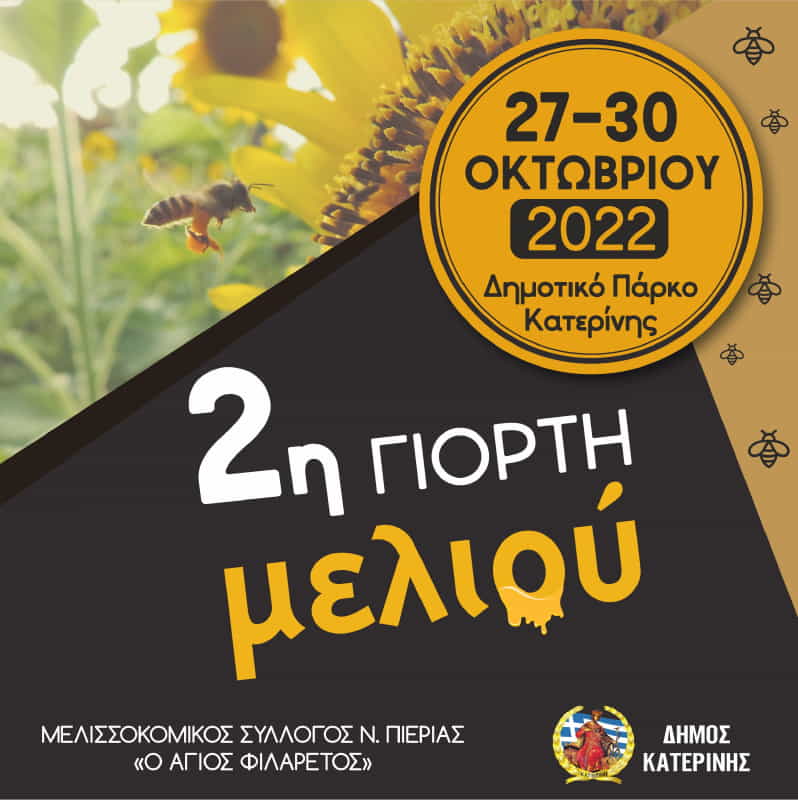 Μελισσοκομικός Σύλλογος Ν. Πιερίας “Ο Αγ. Φιλάρετος” – Δήμος Κατερίνης: 2η Γιορτή Μελιού – 27 έως 30 Οκτωβρίου στο Δημοτικό Πάρκο