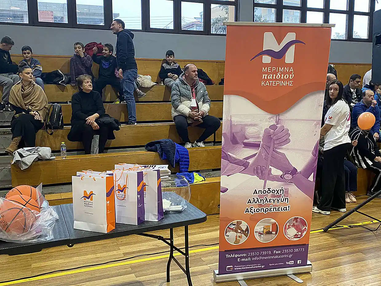 Όπως κάθε χρόνο έτσι και φέτος η Μέριμνα Παιδιού Κατερίνης στο πλαίσιο της Παγκόσμιας Ημέρας ατόμων με Αναπηρία, που έχει καθιερωθεί από τον ΟΗΕ ως η 3η Δεκεμβρίου συνεχίζει αυτήν την πρωτότυπη δράση , ευαισθητοποίησης. Στο Τουρνουά παρευρέθηκαν 250 μαθητές, πλήθος εκπαιδευτικών για να το παρακολουθήσουν από σχολεία της Πιερίας. Στον αγώνα συμμετείχαν παιδιά από την Μέριμνα με την αντίπαλή ομάδα να είναι «παίχτες» από σχολεία της πόλης