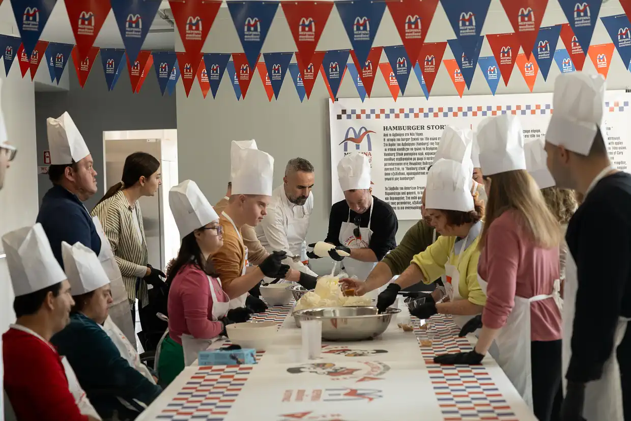 Με οδηγό τον σεφ Βασίλη Μουρατίδη και την ομάδα του, οι νέοι της Μέριμνας μαγείρεψαν εμπνευσμένα πιάτα από την αμερικάνικη κουζίνα και ετοίμασαν 250 μερίδες φαγητού, μέρος των οποίων διατέθηκαν στον Ξενώνα του Συλλόγου Μεταμόρφωση.