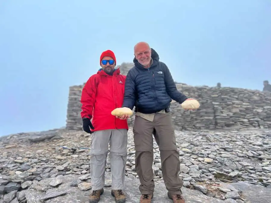 «Το 2019 – όπως αναφέρει ο Δημήτρης Πολίτης – μαζί με τον αδερφό μου Γιάννη, που είναι μηχανικός, τον ξάδερφό μου Δημήτρη Ευαγγελινό και τον Ράμζι Τζορτζ Χούρι, συνεργάτη μου από την Ιορδανία, ανεβήκαμε στον Όλυμπο για να απολαύσουμε τη διαδρομή και τη φύση. Εκεί, είδαμε το εκκλησάκι του Προφήτη Ηλία και γεννήθηκε η ιδέα να βοηθήσουμε για να το ξαναφτιάξουμε, γιατί ήταν σε πολύ κακή κατάσταση. Ο Ράμζι ενθουσιάστηκε και έδειξε από την αρχή μεγάλο ενδιαφέρον. Έτσι, το εκκλησάκι μέσα σε ένα χρόνο είχε φτιαχτεί».Μια πέτρα από την Ιορδανία, στο πιο ψηλό εκκλησάκι του Ολύμπου