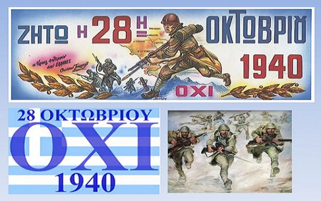 Τιμούμε και δοξάζουμε τη γενναιότητα, τον ηρωισμό και το σθένος των προγόνων μας που με αυταπάρνηση πολέμησαν για την ελευθερία και την εθνική μας ενότητα, βροντοφωνάζοντας ΟΧΙ στο ναζισμό, στην υποδούλωση και τη βία.
