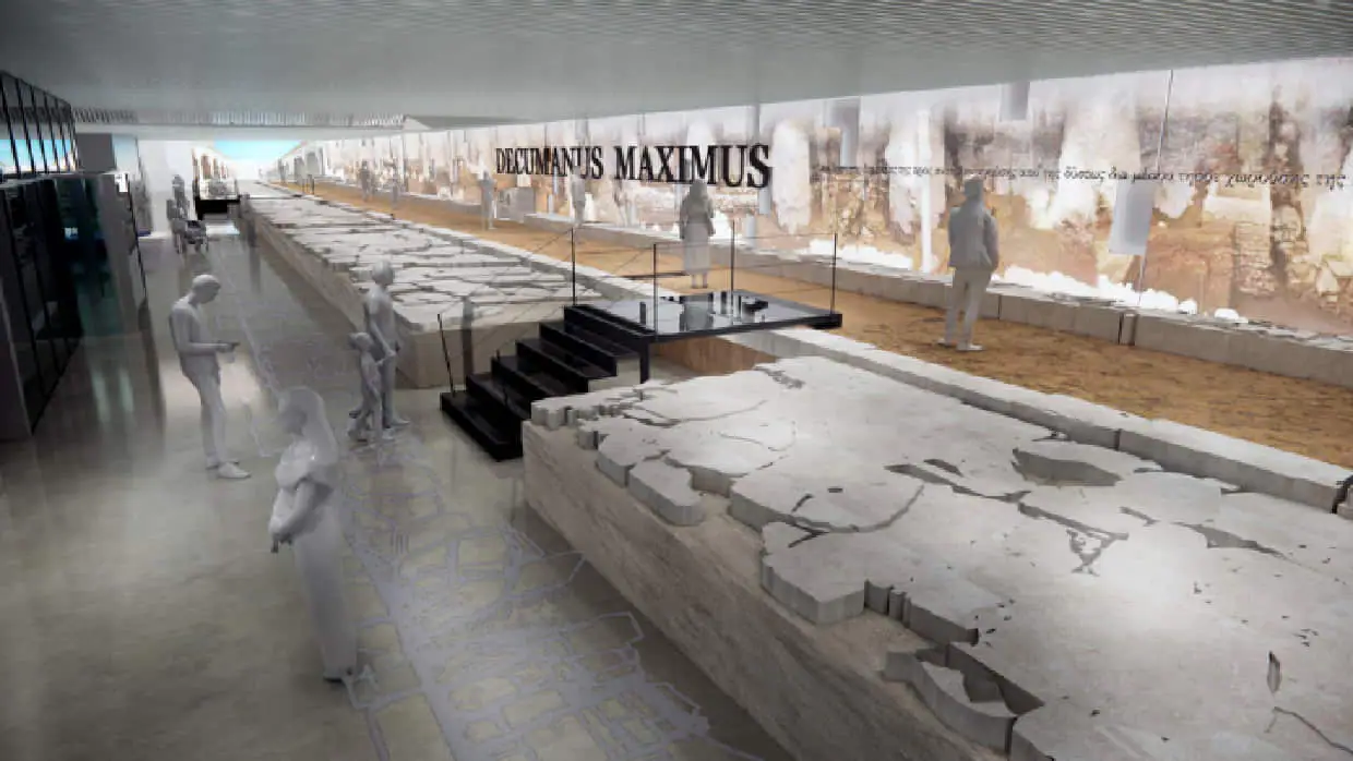 Οι προς έκθεση αρχαιότητες – συνεχίζει το ΥΠΠΟΑ στην ανακοίνωσή του – επιλέγονται για να αφηγηθούν την ιστορία της πόλης και των ανασκαφών του μεγάλου έργου. Η κεντρική ιδέα της έκθεσης εστιάζει στην πολυκεντρική οργάνωση που στοιχειοθετεί την οικοδομική και τεχνολογική ιστορία της πόλης, και συγχρόνως αναβιώνει τη φυσιογνωμία της. Οι αρχαιότητες διαχωρίζονται στα ευρήματα των εκτός των τειχών περιοχών και σε αυτά εντός των τειχών της πόλης. Οι αρχαιότητες από ανασκαφές των εντός των τειχών σταθμών οργανώνονται στις ενότητες: Υποδομές της πόλης, Οικοδομώντας την πόλη στον χρόνο, Λουτρά, Βιοτεχνικές Δραστηριότητες στην πόλη. Εξέχουσα θέση μεταξύ αυτών, κατέχει το τμήμα του decumanus maximus, το οποίο προέρχεται από την ανασκαφή του σταθμού «Αγία Σοφία», και το οποίο δεν μπορεί να επανατοποθετηθεί μετά τις μεταβολές, το 2018, στο κέλυφος του σταθμού, καθώς και το ψηφιδωτό της λουτρικής εγκατάστασης, που αποκαλύφθηκε σε υποκείμενα – της φάσης επανατοποθέτησης – στρώματα στο σταθμό «Βενιζέλου». Οι αρχαιότητες από τις ανασκαφές των εκτός των τειχών σταθμών του μετρό, αποτελούν μια ενότητα, όπου παρουσιάζονται διαφορετικές ταφικές κατασκευές, εστιάζοντας το ενδιαφέρον στο κατασκευαστικό μέρος και όχι στο χρηστικό περιεχόμενο.