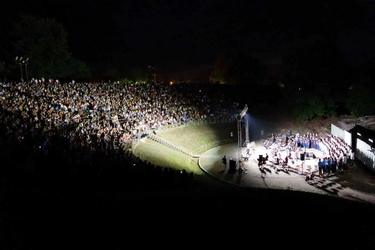 Με αφετηρία παραδοσιακά μικρασιάτικα αλλά και νεότερα τραγούδια για την Μικρασιατική Καταστροφή και πρωταγωνιστές την Ορχήστρα, τη Χορωδία του Μουσικού Σχολείου Κατερίνης και την Δημοτική Χορωδία Αιγινίου «Canto Olympus» υπό τη διεύθυνση του μαέστρου Μιχάλη Καρυοφυλλίδη, την καταξιωμένη καλλιτέχνιδα Γλυκερία, τους ερμηνευτές Παναγιώτη Τουρνά, Δέσποινα Παπαγεωργίου και Κωνσταντίνα Καράμπα και αφηγητή τον Ομότιμο Καθηγητή του Α.Π.Θ. κ. Γεώργιο Κουφό, το Μουσικό Σχολείο πρόσφερε μία εκδήλωση υψηλών προδιαγραφών στο κοινό που πλημμύρισε το βράδυ της Τετάρτης 6 Ιουλίου κάθε γωνιά του αρχαίου θεάτρου Δίου, στο πλαίσιο του 51ου Φεστιβάλ Ολύμπου.