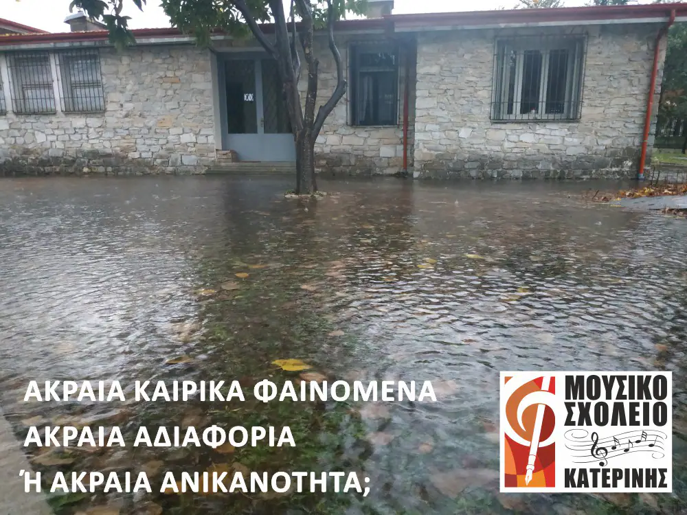 Ας μας εξηγήσει κάποιος αρμόδιος, πόσο δύσκολο και πόσο κοστοβόρο είναι να ανοιχτούν 4-5 τρύπες, προκειμένου να διοχετεύονται τα όμβρια ύδατα και να μην μετατρέπεται σε λίμνη ο προαύλιος χώρος ενός σχολείου, κάθε φορά που βρέχει και όχι μόνο όταν επικρατούν ακραία καιρικά φαινόμενα.
