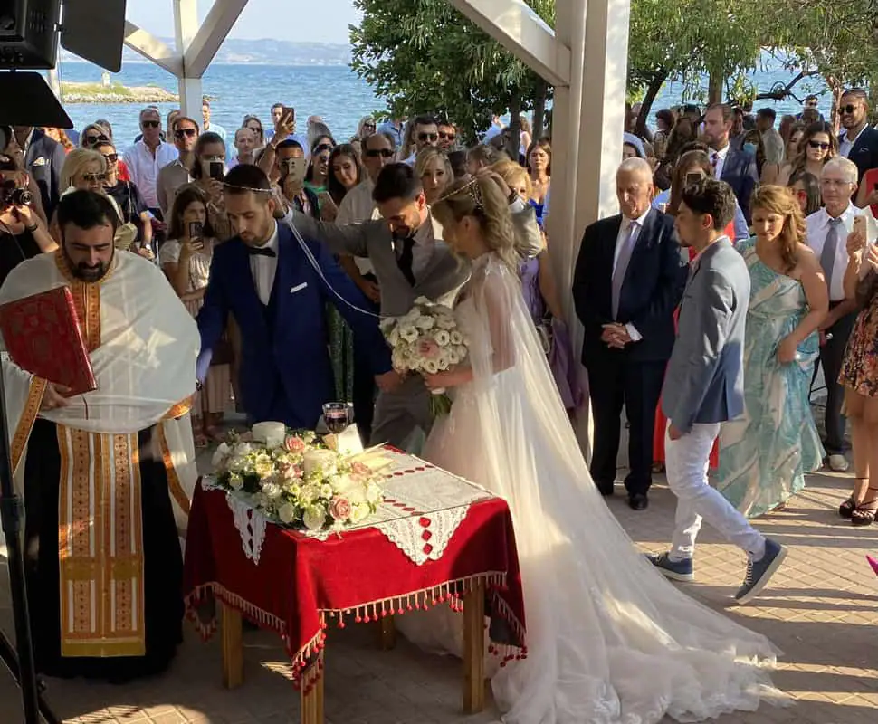 Εγκάρδιες ευχές δέχθηκε το ζευγάρι για μια ζωή γεμάτη χαρές και ευτυχία από τους καλούς τους φίλους Φώντα Μπαραλιάκο και Μελίνα Κορομήλη, Απόστολο Πόδα, Σάββα Αμανατίδη και Κατερίνα Πόδα και Γιώργο Παπαζήση και τη σύζυγό του Συνοδή.