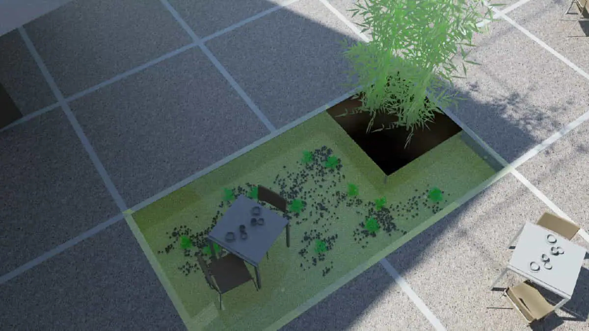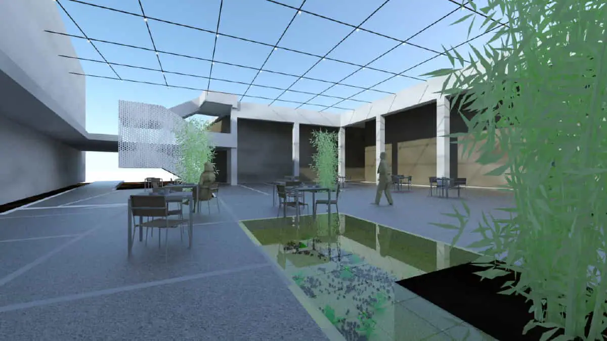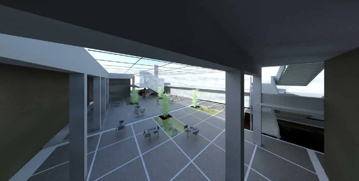 Το αίθριο της πλατείας Δημαρχείου γυρίζει σελίδα, αναγεννάται και μεταμορφώνεται σε μία καλαίσθητη στοά, σε ένα πραγματικό στολίδι στην καρδιά της πόλης. Μία σύγχρονη αγορά, που θα αντανακλά τον εμπορικό δυναμισμό της πόλης, θα στεγάζει καταστήματα και θα αποτελεί έναν χώρο κοινωνικής συγκέντρωσης, επικοινωνίας, εμπορικών και πολιτιστικών δράσεων.