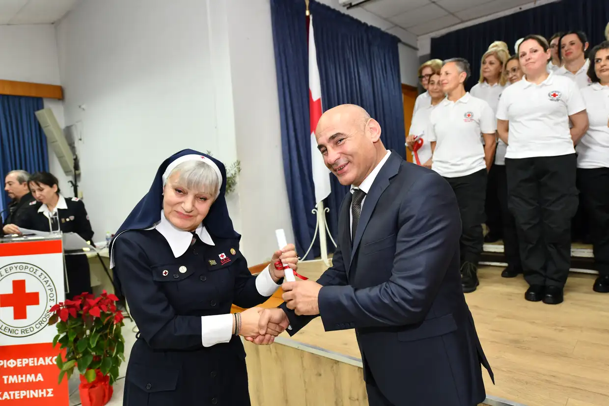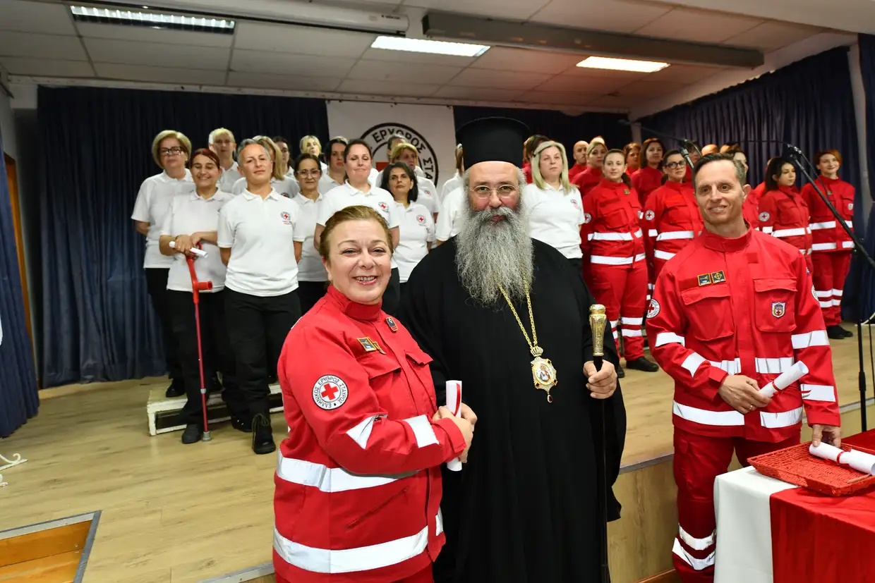 Ο Σεβασμιώτατος Μητροπολίτης κ. Γεώργιος πρόεδρος του τοπικού Ερυθρού Σταυρού συνεχάρη τους νέους Σαμαρείτες και εξήρε την προσπάθεια των παλαιών μελών τα οποία επιβραβεύτηκαν .
