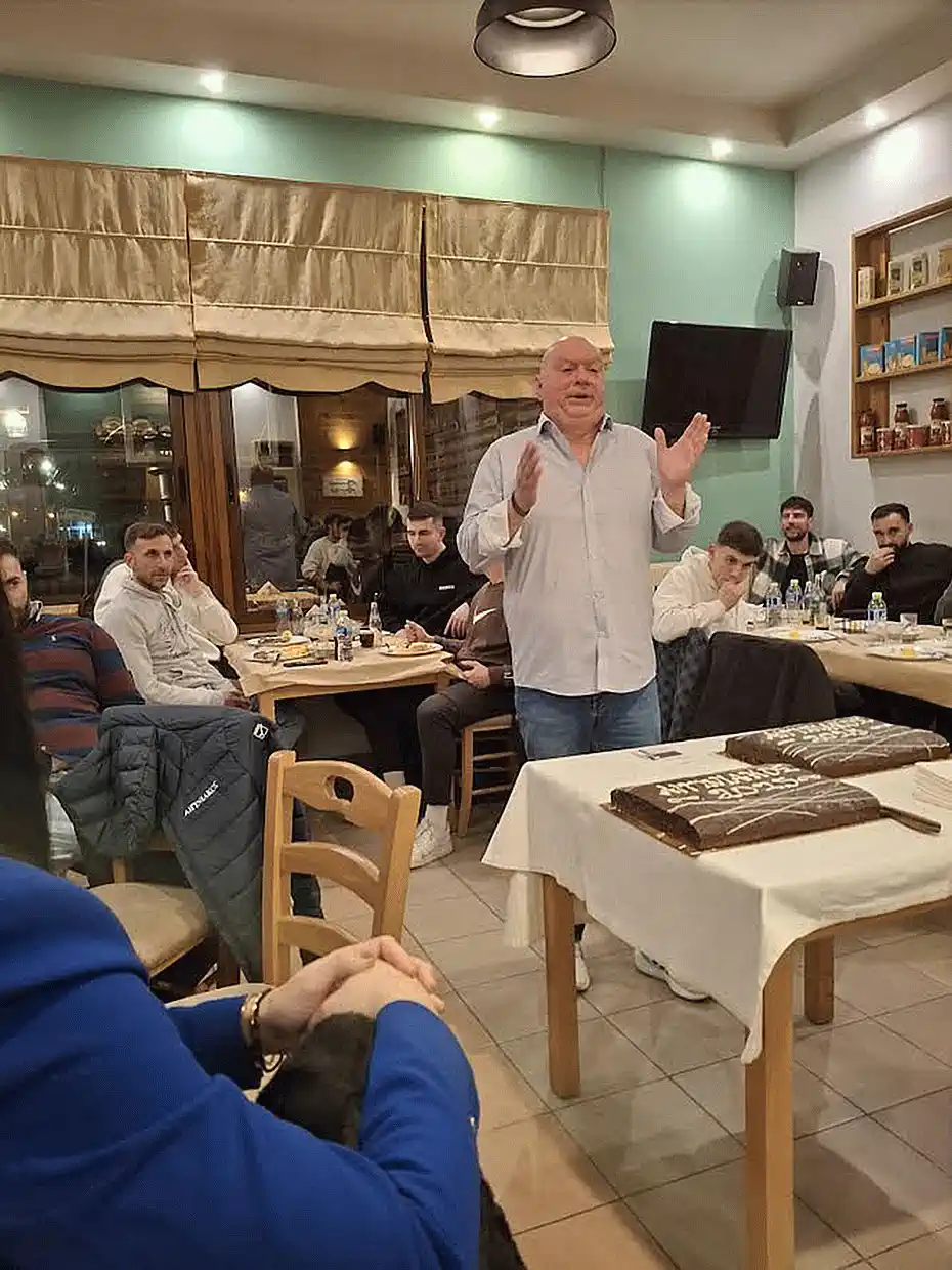 Ο Πρόεδρος της ΕΠΣ Πιερίας κ. Στέργιος Τόκας έδωσε με τη σειρά του τις ευχές στους Διοικούντες, Προπονητές και Ποδοσφαιριστές της ομάδας και εξέφρασε την βεβαιότητα ότι θα παραμείνει στην κατηγορία.