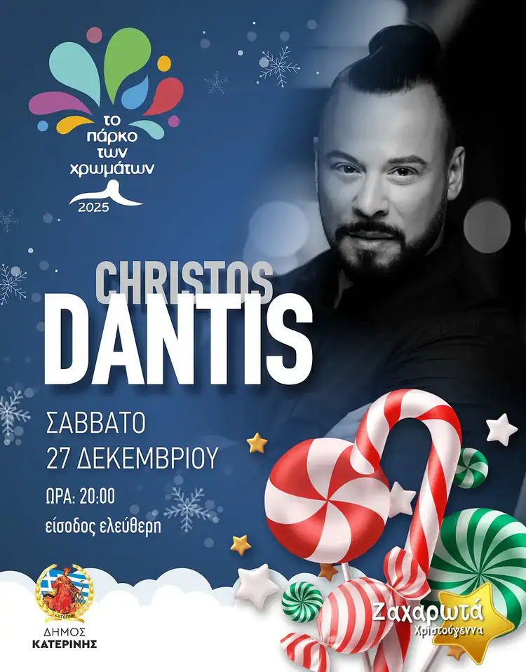 Το Πάρκο των Χρωμάτων ετοιμάζεται να υποδεχτεί έναν καλλιτέχνη που ξέρει όσο λίγοι να μετατρέπει τη σκηνή σε εμπειρία. Ο Χρήστος Δάντης ανεβαίνει στη σκηνή το Σάββατο 27 Δεκεμβρίου, στις 20:00, για μια βραδιά γεμάτη ρυθμό, συναίσθημα και τραγούδια που έχουν αφήσει αποτύπωμα στη σύγχρονη ελληνική μουσική.
