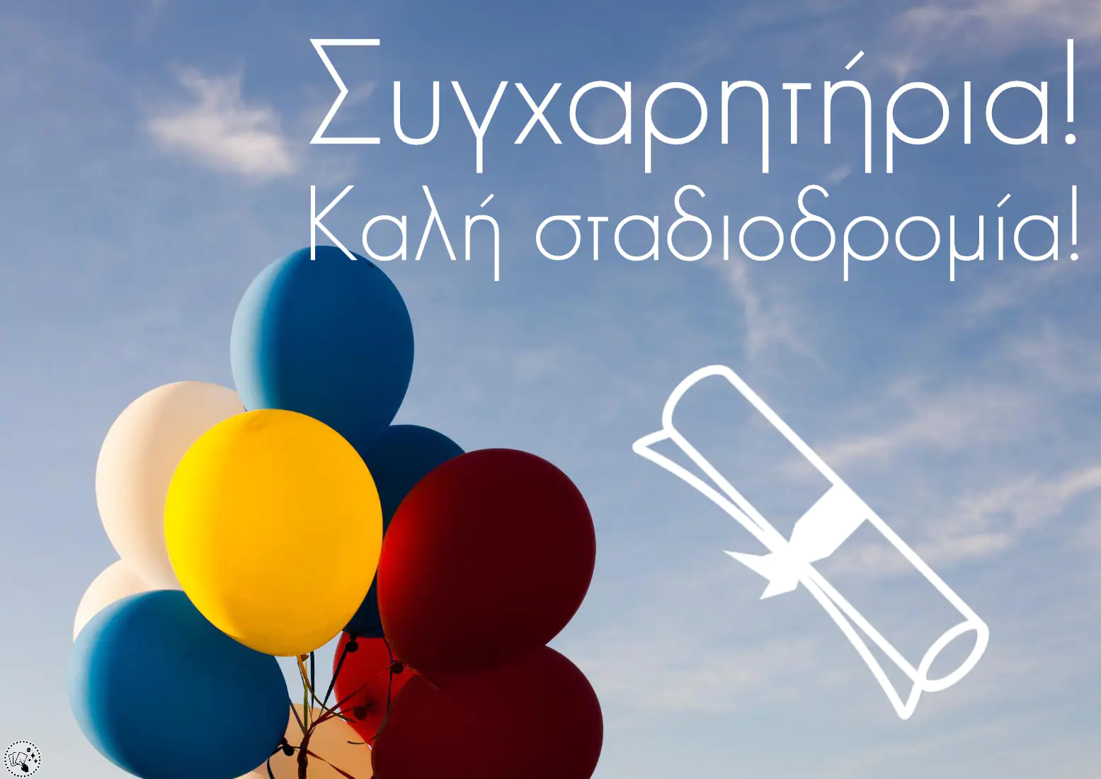 Ευχόμαστε στους/στις επιτυχόντες/χουσες του σχολείου μας καλή σταδιοδρομία στις Ακαδημαϊκές σπουδές τους.  Επιθυμία μας είναι να πραγματοποιήσουν τα όνειρά τους και να θέσουν τις βάσεις για τη μελλοντική τους πορεία.