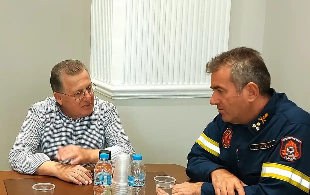Η συνάντηση, στην οποία παρέστησαν επίσης, ο Διοικητής Πυροσβεστικών Υπηρεσιών Νομού Πιερίας, Πύραρχος, Παναγιώτης Πατσιαλής, ο επιτελάρχης – αξιωματικός, υπασπιστής του κ. Φαλάρα, Πέτρος Γύτσης, η αντιδήμαρχος Πολιτισμού/Τουρισμού Ελίνα Διαμαντοπούλου και ο ειδικός συνεργάτης του Δημάρχου, Χαράλαμπος Φωκαΐδης, ολοκληρώθηκε με ανταλλαγή αναμνηστικών δώρων.