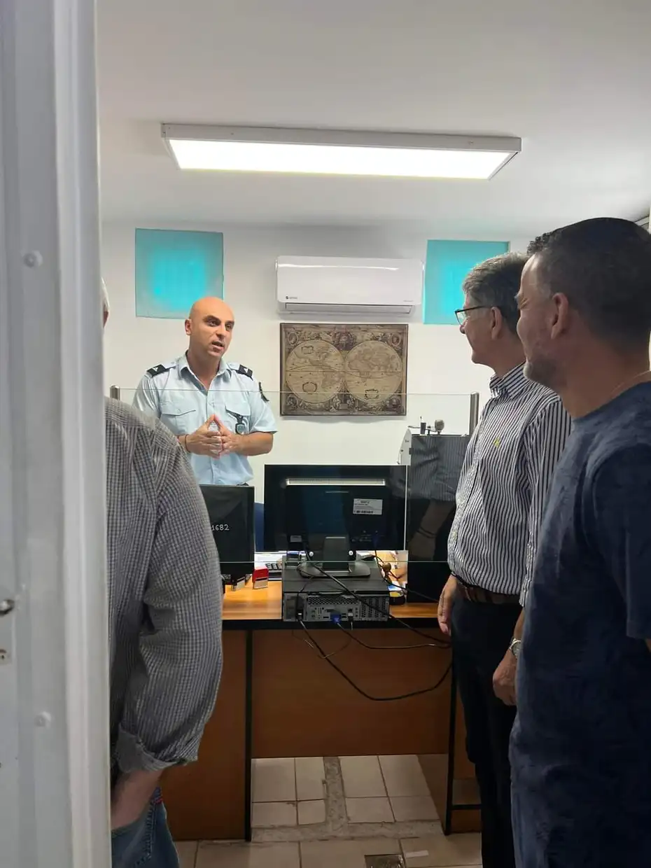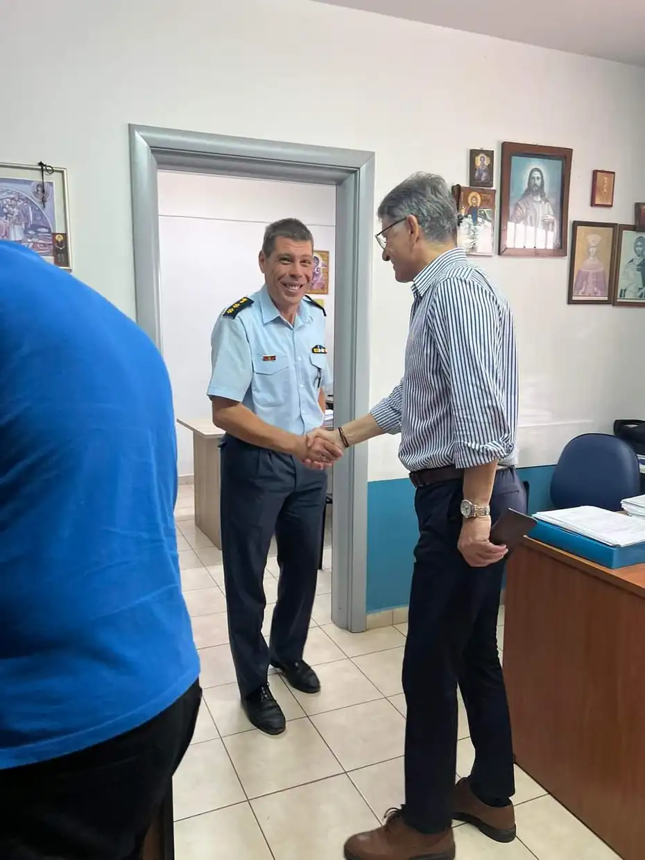 Τον υποψήφιο Δήμαρχο υποδέχθηκε ο Διοικητής του Αστυνομικού Τμήματος, με τον οποίο είχαν μια εκτενή συζήτηση σε πολύ φιλικό κλίμα για θέματα που άπτονται των αρμοδιοτήτων της υπηρεσίας αλλά και προβλήματα σχετικά με την επάνδρωση σε ανθρώπινο δυναμικό, το στόλο οχημάτων και τον υλικοτεχνικό εξοπλισμό του τμήματος.
