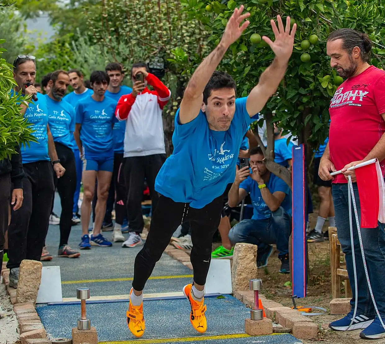 Ο Μίλτος Τεντόγλου έκανε άλμα σε αγώνα σε κήπο σπιτιού στην Παλλήνη
