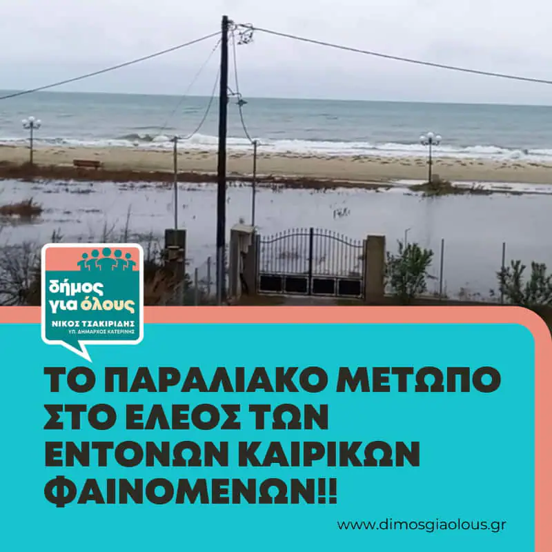 Αντιλαμβάνομαι το μέγεθος της κακοκαιρίας, αλλά δεν αντιλαμβάνομαι τη στασιμότητα, την αδράνεια και την πολιτική επιλογή να αφήνεται το παραλιακό μέτωπο του Δήμου Κατερίνης κάθε φορά στο έλεος των έντονων καιρικών φαινομένων!