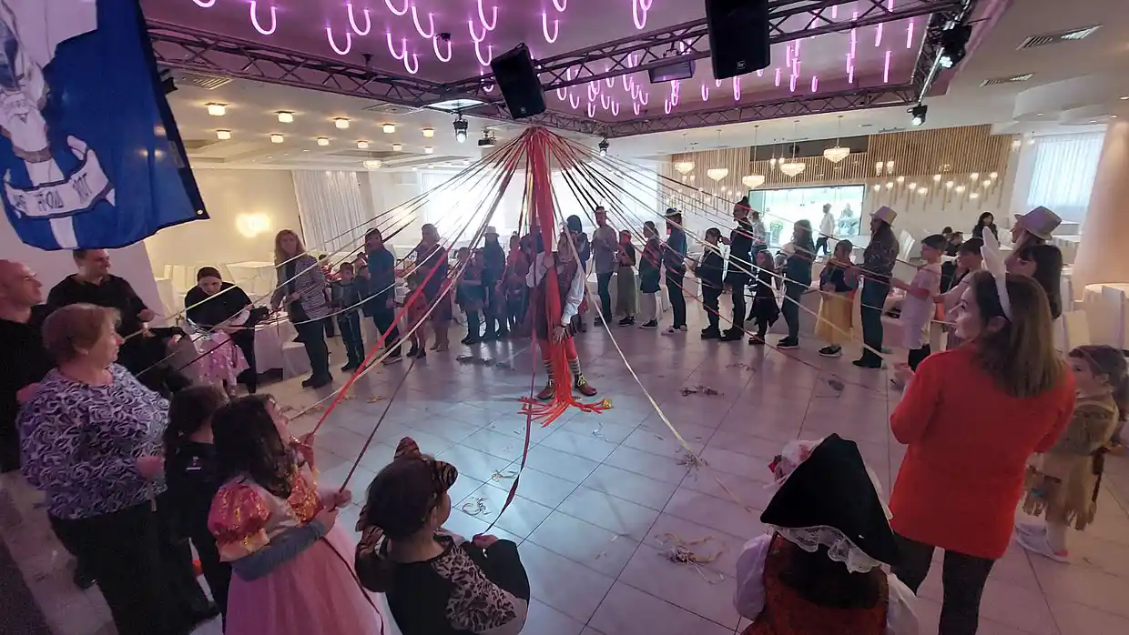 Κατά τη διάρκεια της εκδήλωσης μικροί και μεγάλοι διασκέδασαν με τα παιχνίδια και τους χορούς των διασκεδαστών γεμίζοντας την αίθουσα με χαμόγελα και χαρούμενες παιδικές φωνές.