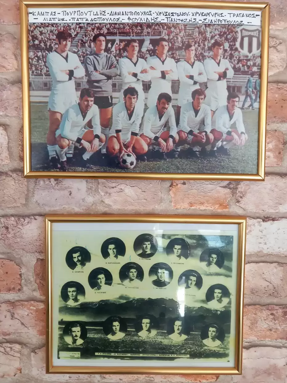 Στο καφέ της Κατερίνης , «ο ΗΛΙΑΣ»,  στην οδό  Τραπεζούντος, στα κάδρα αποτυπωμένες οι εικόνες τόσο του Πιερικού της εποχής του τέλους της δεκαετίας του ΄60, όσο και του Ολύμπου πριν από την συνένωση (1961) με το Μέγα Αλέξανδρο της πόλης και τη δημιουργία της ομάδας-εκφραστή  του πιερικού ποδοσφαίρου.