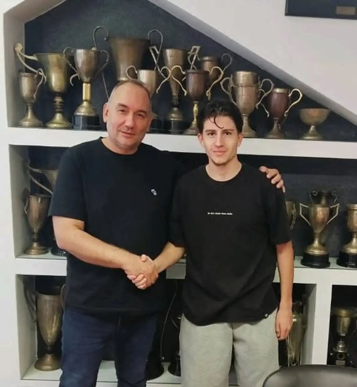 Στη φωτογραφία το νέο μεταγραφικό απόκτημα του Πιερικού με τον Πρόεδρο του ΣΦΚ, Φώτη Θέο.