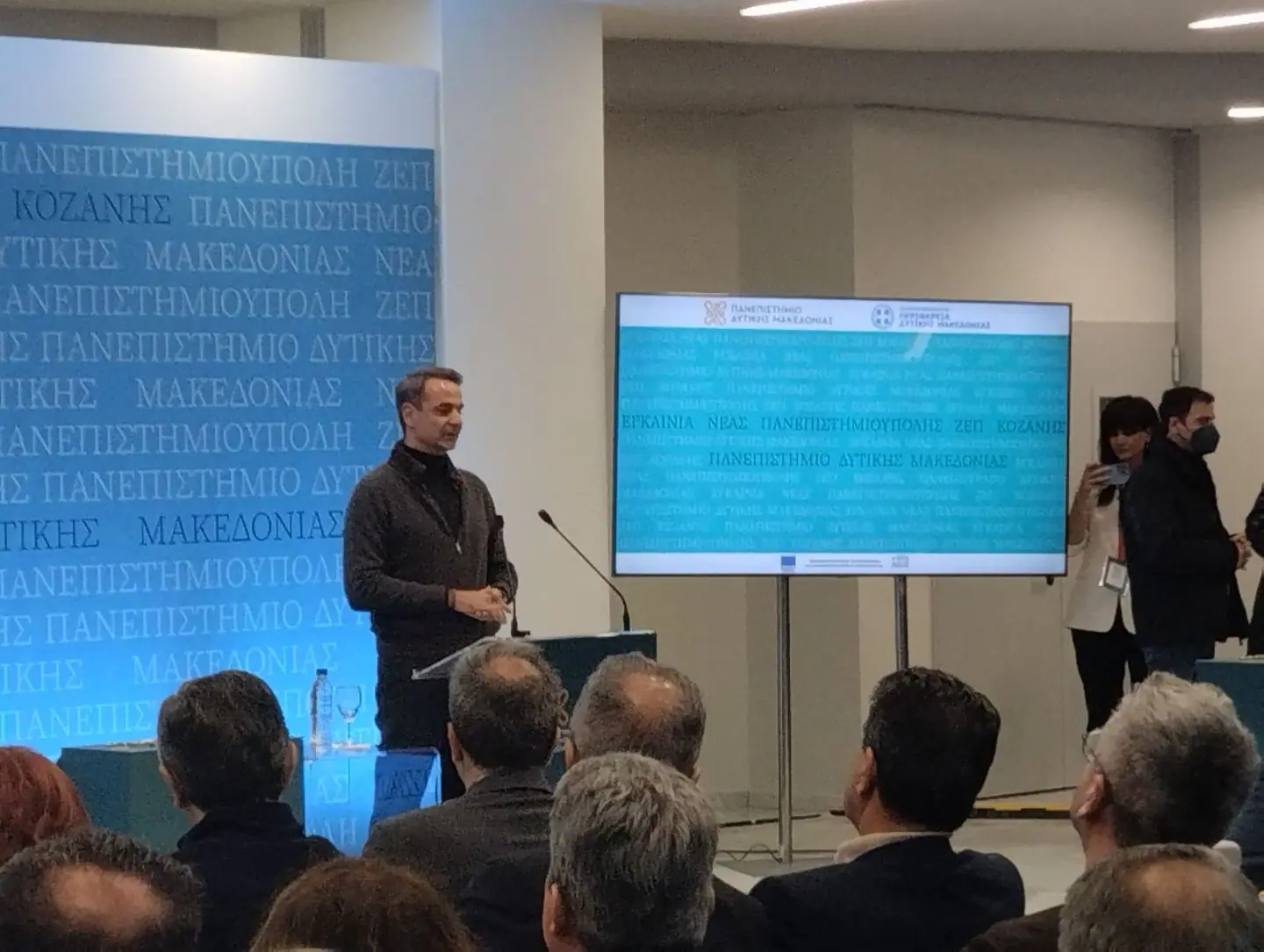 Στον χαιρετισμό του ο κ. Μητσοτακης είπε:  “Είναι μια σπουδαία μέρα σήμερα για τη Δυτική Μακεδονία. Είμαι πράγματι εντυπωσιασμένος από αυτό το έργο. Ένα υπερσύγχρονο κτήριο. Πλέον το πανεπιστήμιο Δ.Μ. είναι ένα από τα πιο δυναμικά της πατρίδας μας. Και αυτό δεν είναι σχήμα λόγου. Είναι σημαντικό να επενδύσουμε στο πανεπιστήμιο. Εδώ βλέπω πως γίνεται μια σπουδαία δουλειά”.