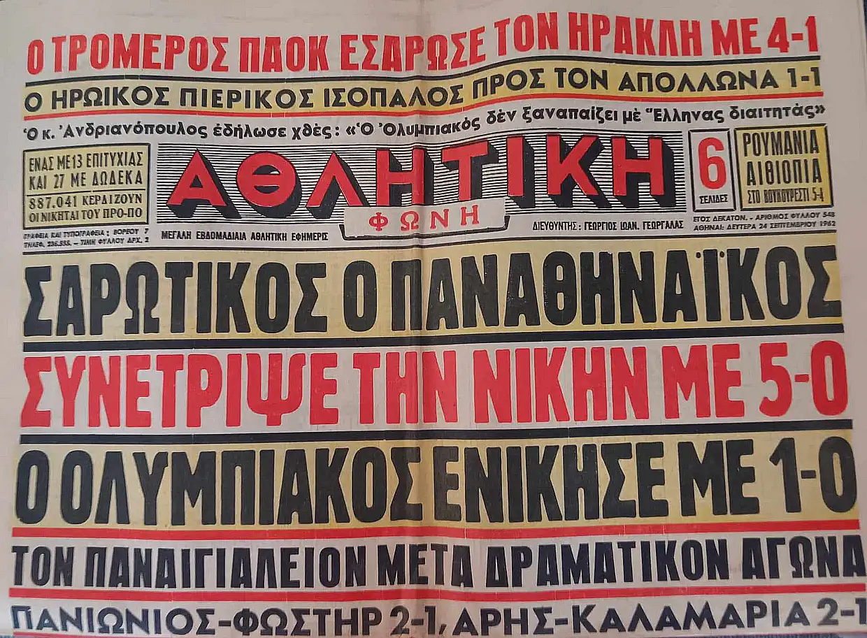 Το δημοσίευμα συνοδεύεται με φωτογραφική απεικόνιση του πρωτοσέλιδου της εφημερίδας «Αθλητική Ηχώ», της ανάλυσης του αγώνα και φωτογραφική φάση της συνάντησης.