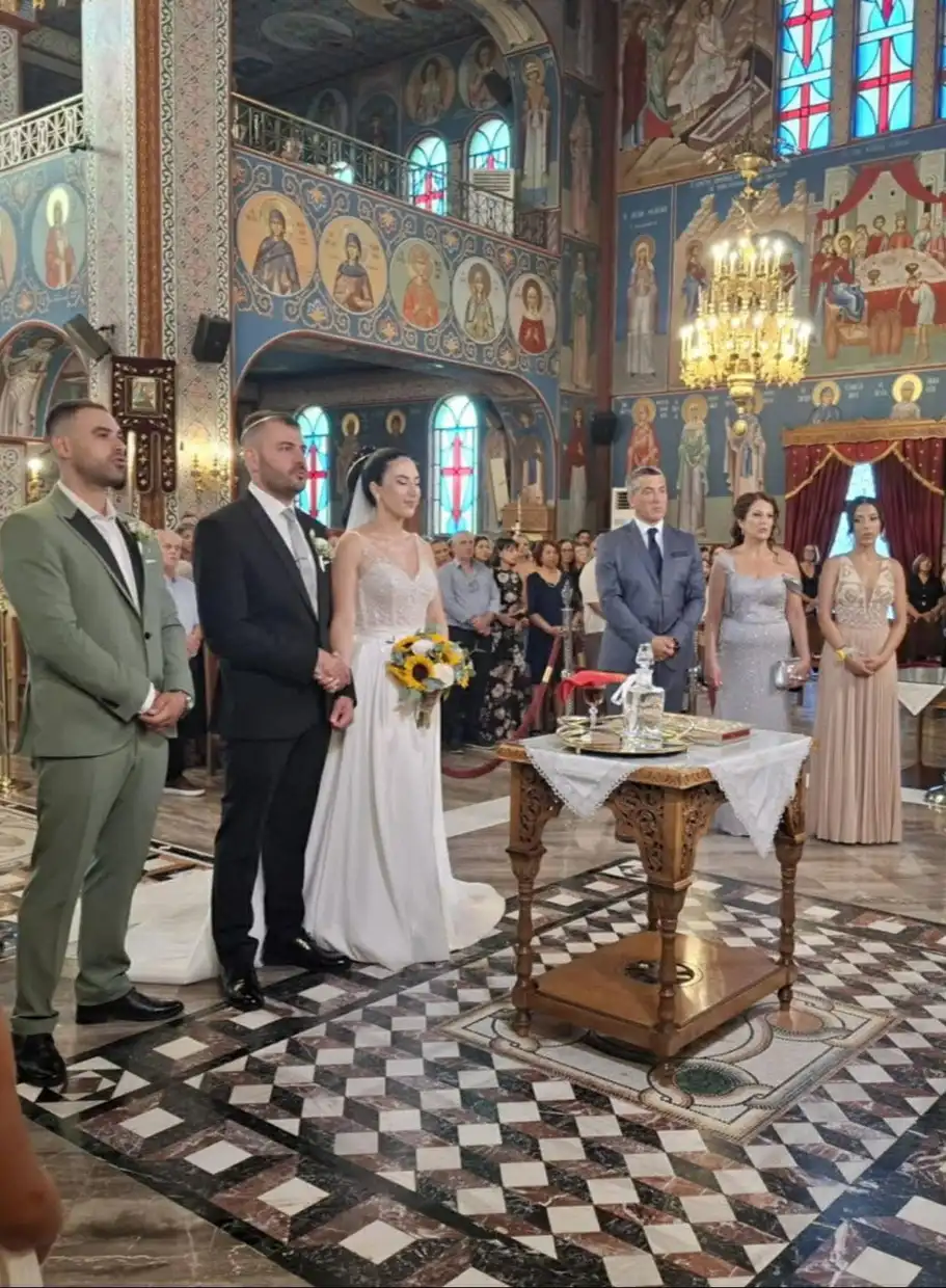 Μετά το μυστήριο, συγγενείς και φίλοι συγκεντρώθηκαν στο κέντρο «Αρια» για να γιορτάσουν και να δώσουν τις θερμές ευχές τους στο νέο ζευγάρι, γεμίζοντας τον χώρο με χαρά και αγάπη.
