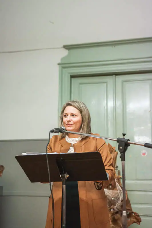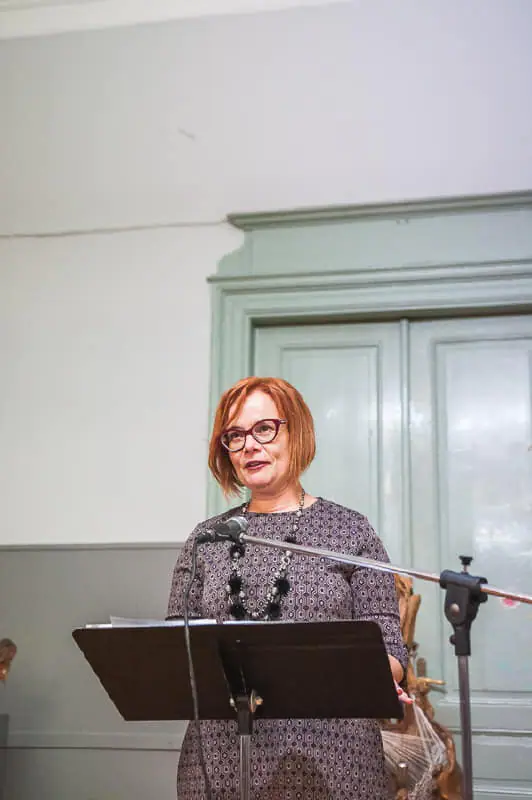 Την εκδήλωση συντόνισε και παρουσίασε η νομικός και δικηγόρος της Κατερίνης Μαγδαληνή Κάλφα, η οποία με γλαφυρό τρόπο αναφέρθηκε στο επίγραμμα της βραδιάς, επισημαίνοντας μεταξύ άλλων τα εξής “Η αποψινή εκδήλωση είναι ιδιαίτερης σημασίας βραδιά γιατί πέραν του ότι θα μας γνωστοποιηθούν οι νέες δραστηριότητες και οι σκοποί του Συλλόγου, ο σύλλογος θα τιμήσει καλλιτέχνες που σημάδεψαν την τέχνη όπως αυτή εκφράζεται, με τον νου, το βλέμμα, το χέρι και την ευαισθησία μέσα από τα έργα τους”.