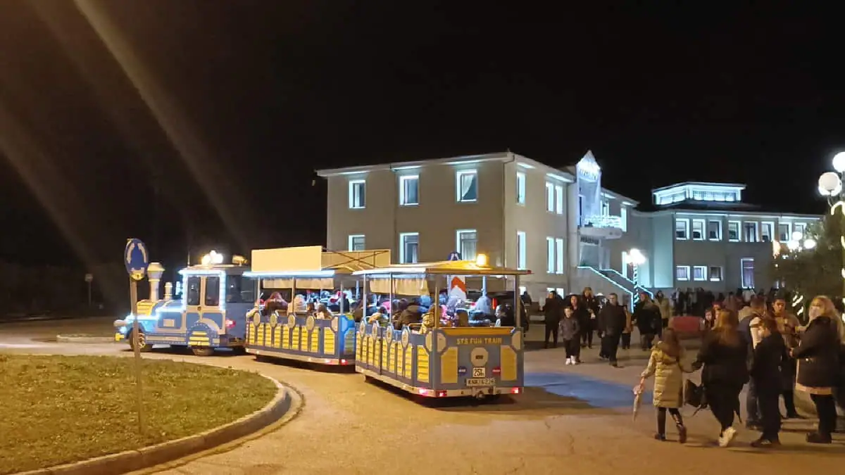Οι μαθητές και μαθήτριες έγραψαν τις ευχές τους για τη νέα χρονιά, τις οποίες έστειλαν στον ουρανό με φαναράκια που πέταξαν πάνω από το κτίριο του Δημαρχείου, ενώ ένας τυχερός κέρδισε ένα βιβλίο μετά από κλήρωση. Επίσης, καθ’ όλη τη διάρκεια της βραδιάς, μικροί και μεγάλοι επιβιβάζονταν στο Τρενάκι των Χριστουγέννων για μία εορταστική βόλτα.