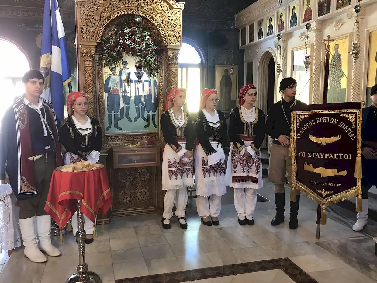 Τους 4 Κρητικούς Αγίους τίμησαν οι «Σταυραετοί» της Κατερίνης με επιμνημόσυνη δέηση που τελέστηκε Ιερό Ναό Κοσμά του Αιτωλού στην Ανδρομάχη, την Κυριακή 29 Οκτωβρίου.