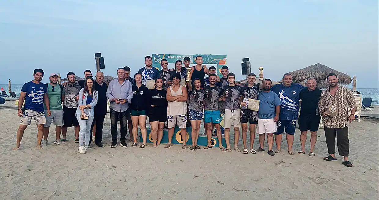 Προπονητής της Εθνικής ομάδας θα είναι ο Μπαταλας Βασίλειος και αρχηγός αποστολής και μέλος της παγκόσμιας ομοσπονδίας ο Παπακωνσταντίνου Κωνσταντίνος και οι δυο παραπάνω προπονητές επίσης των Ολυμπίων Κατερίνης ,η οποία κατέκτησε και το πανελλήνιο πρωτάθλημα ανδρών στην πάλη στην άμμο η έδρα ομάδας είναι το προπονητήριο της ομάδας εντός του ΤΕΙ Κατερίνης Κανελλοπούλου 2 έναντι ΕΟΠΥΥ