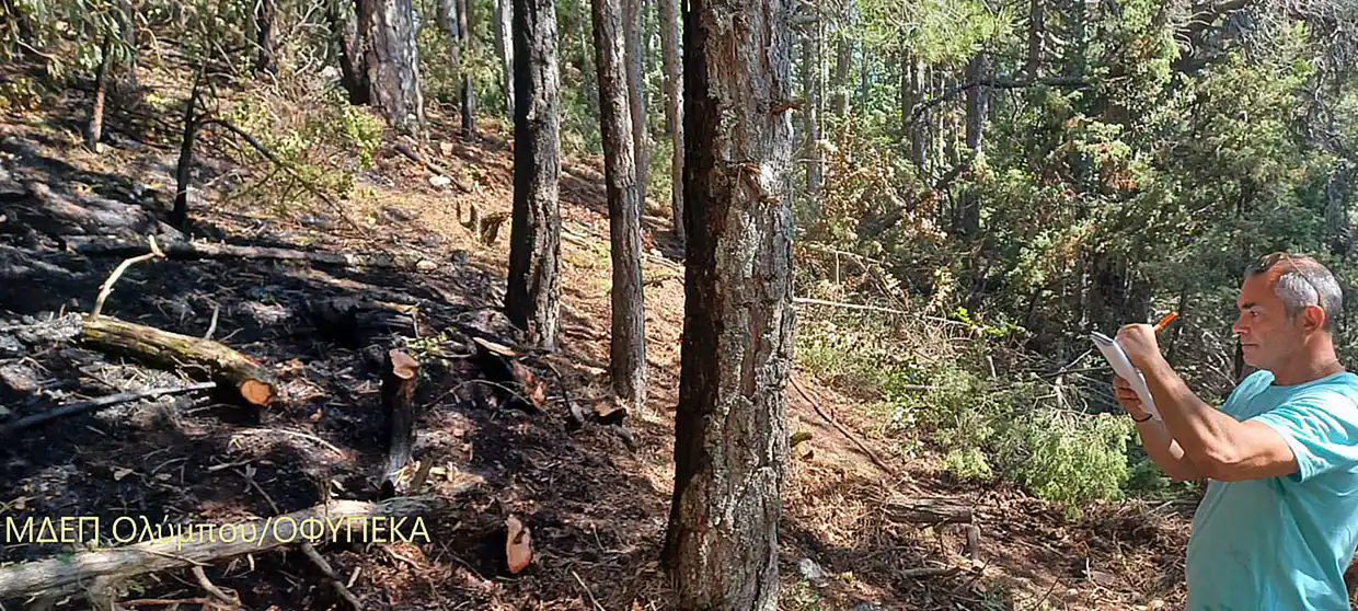 Στελέχη της Μονάδας Διαχείρισης Εθνικού Πάρκου Ολύμπου του ΟΦΥΠΕΚΑ (ΜΔΕΠ Ολύμπου) πραγματοποίησαν εργασίες πεδίου στην περιοχή του καταφυγίου Κορομηλιάς (Δήμος Δίου Ολύμπου) για οριοθέτηση και εκτίμηση της πυρκαγιάς της 14ης Ιουλίου 2024.