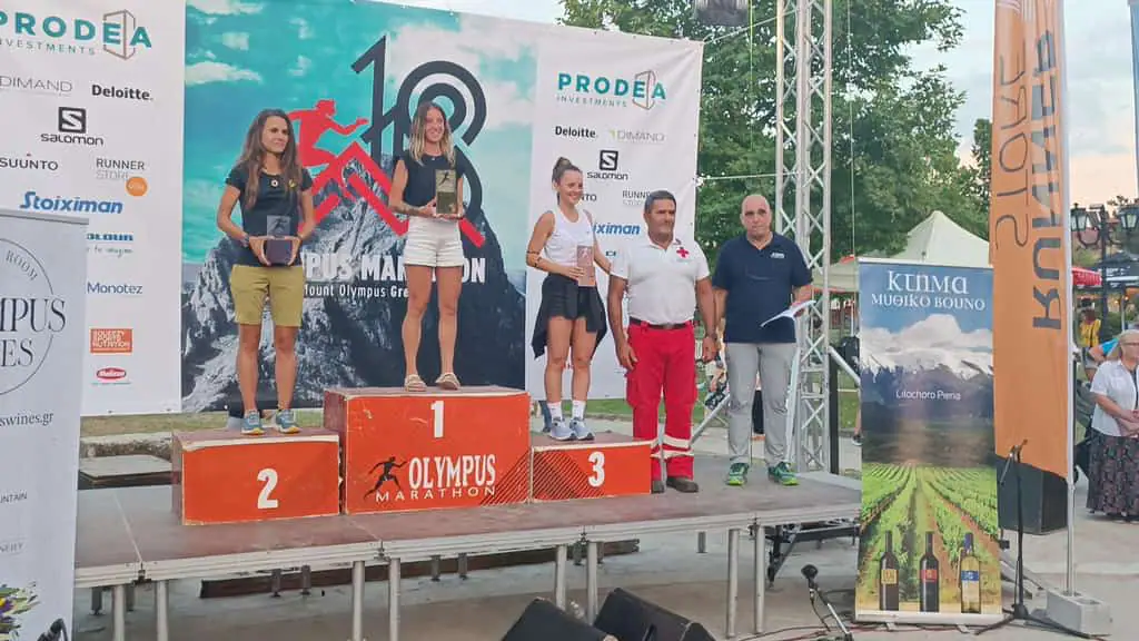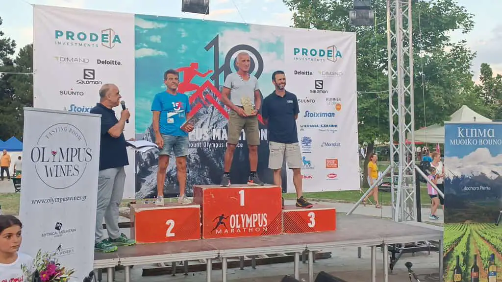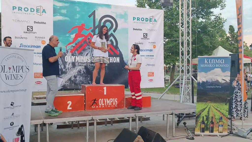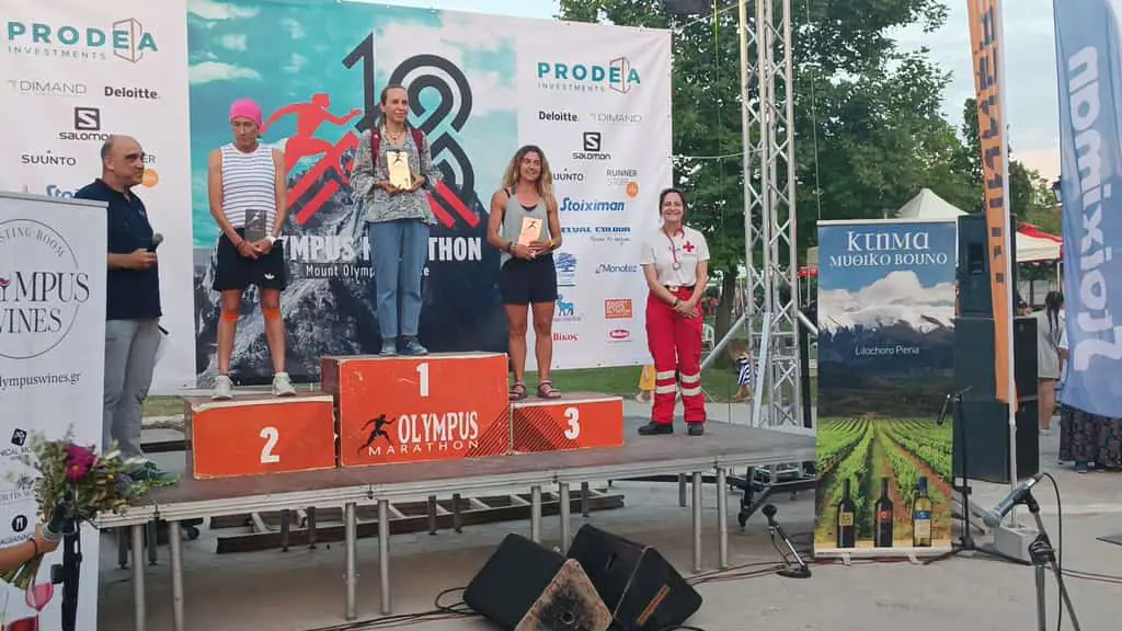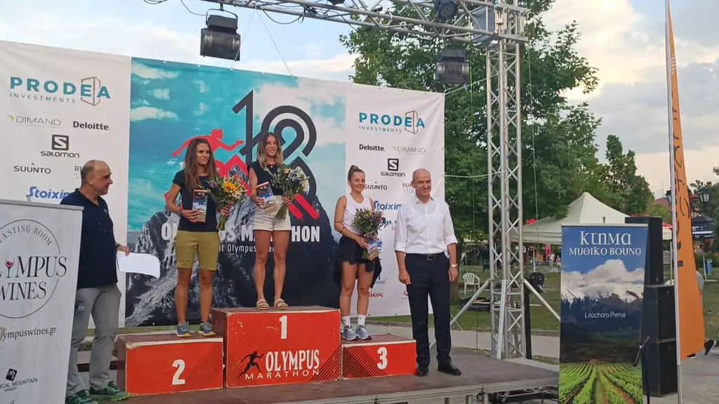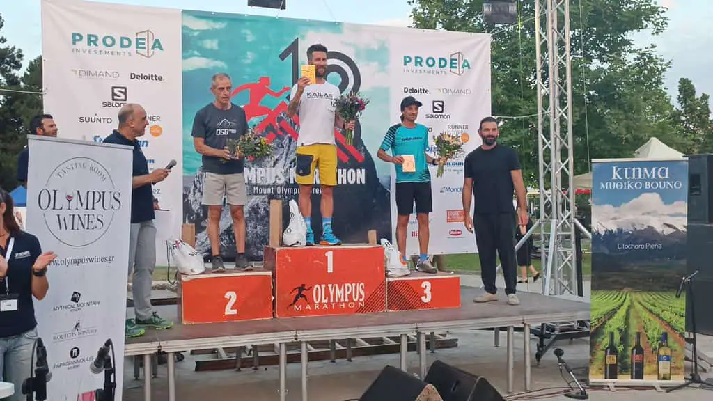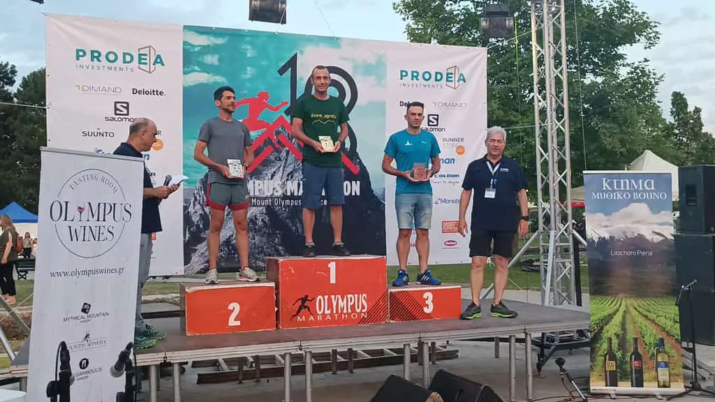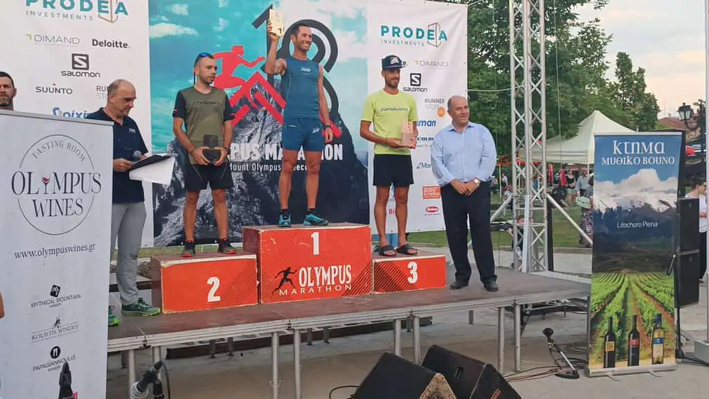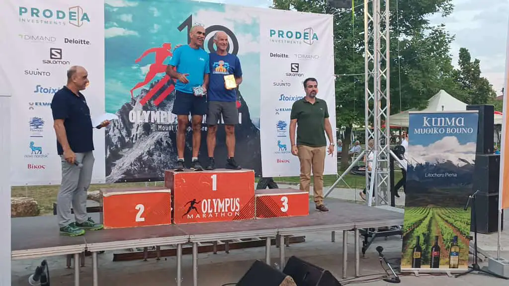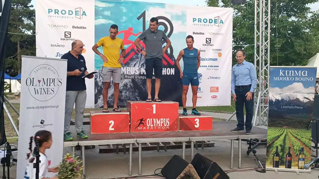 Την απονομή των επάθλων των νικητών του Olympus Marathon και Olympus Ultra 70 χλμ. έκαναν το βράδυ του Σαββάτου 25 Ιουνίου 2022 ο Γενικός Γραμματέας Αθλητισμού Γεώργιος Μαυρωτάς, ο βουλευτής Πιερίας Ν.Δ Φώντας Μπαραλιάκος, ο Δήμαρχος Δίου-Ολύμπου Βαγγέλης Γερολιόλιος, ο Αντιδήμαρχος Λιτοχώρου Δημήτρης Πατσιαρίκας, ο τεχνικός διευθυντής του αγώνα Διονύσης Στρογγύλης, ο δρομέας ορεινού τρεξίματος Πάνος Παναγιωτίδης, ο εκπρόσωπος του Περιφερειακού Τμήματος Κατερίνης του Ελληνικού Ερυθρού Σταυρού Δημήτρης Κατιρτζής και η ιατρός Ισμήνη Κουντούρη, ο ολυμπιονίκης στο χάντμπολ Σάββας Καρυπίδης ως εκπρόσωπος του βουλευτή Πιερίας Ν.Δ Σάββα Χιονίδη και ο εκπρόσωπος χορηγού Αναστάσιος Ξανθάκος.